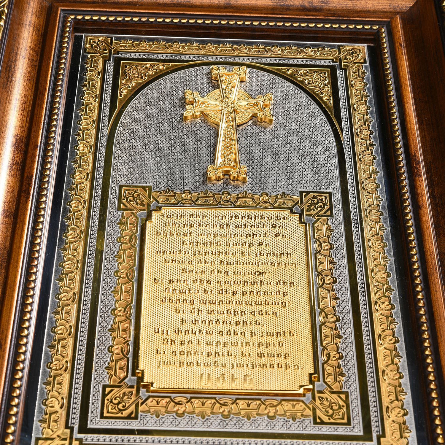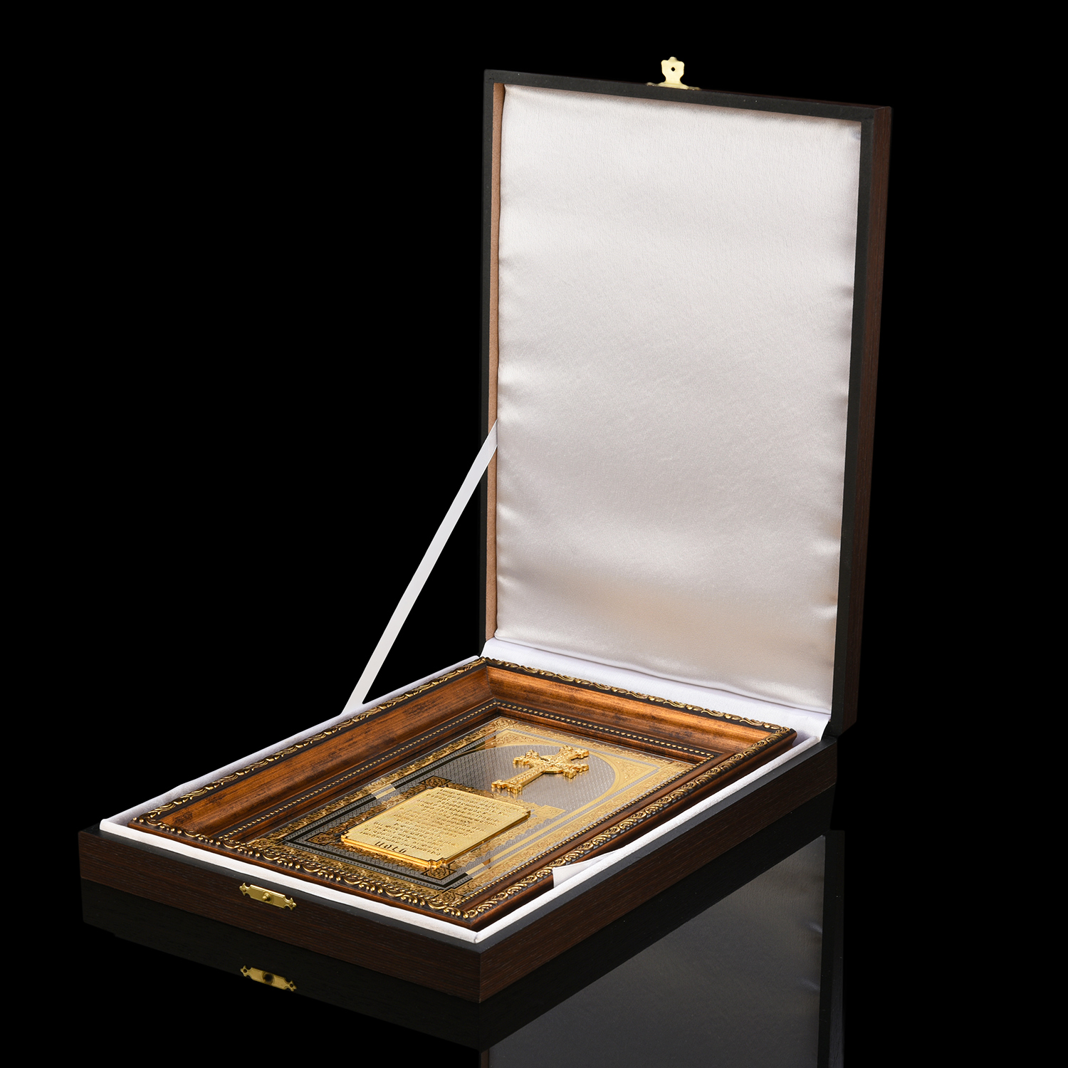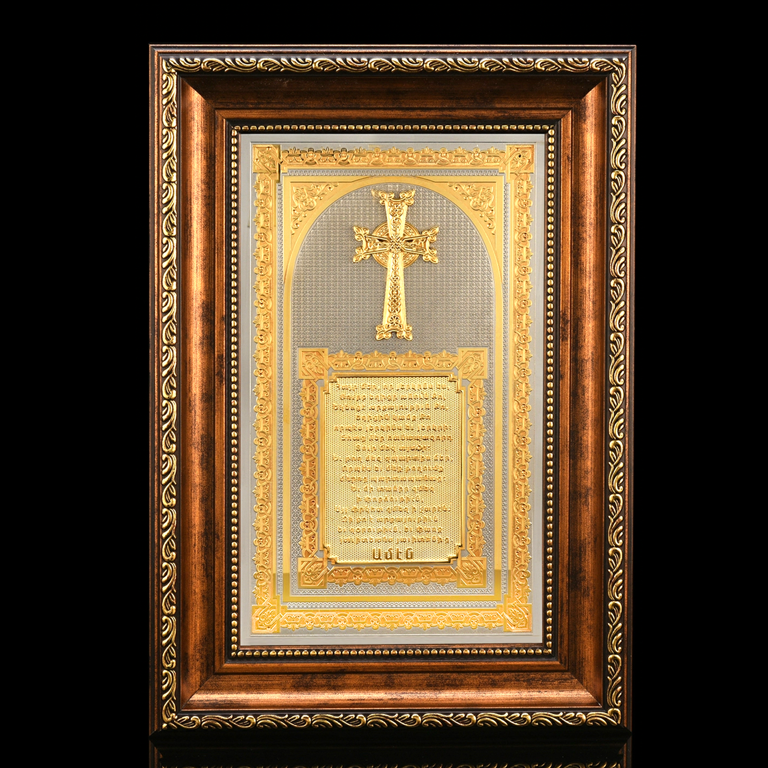 Панно "Молитва". Златоуст.Материалы: латунь, никель, золото 999,9*, дерево.