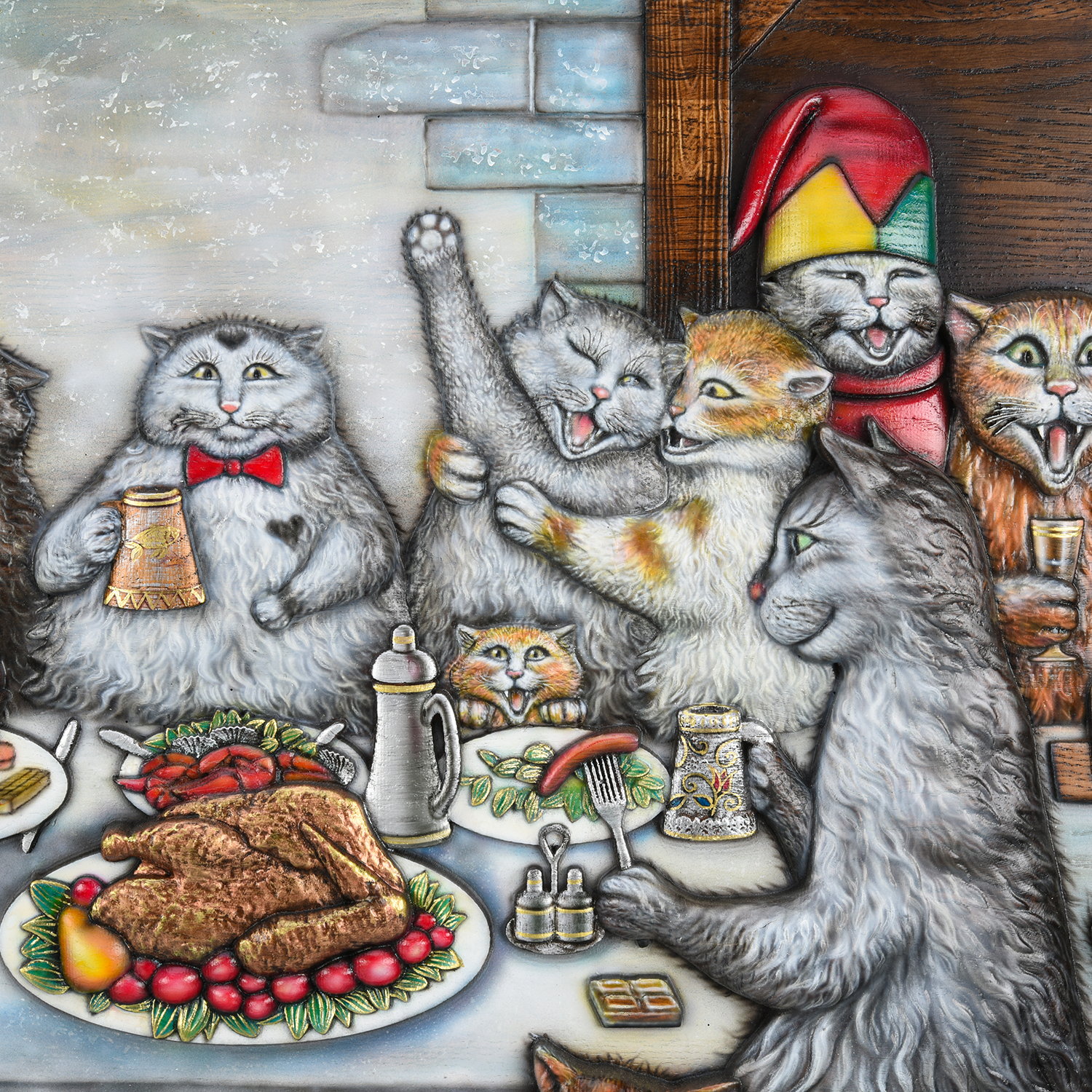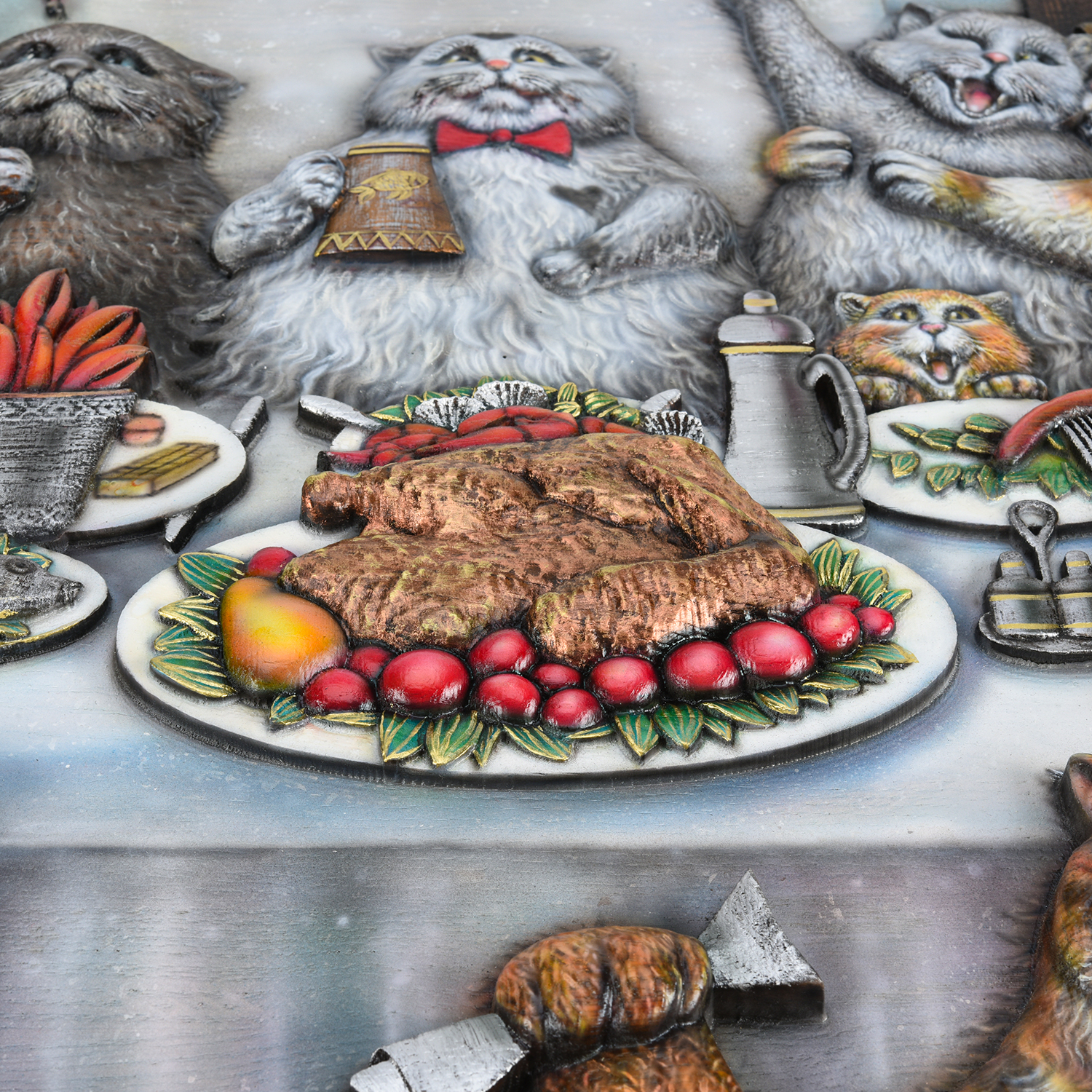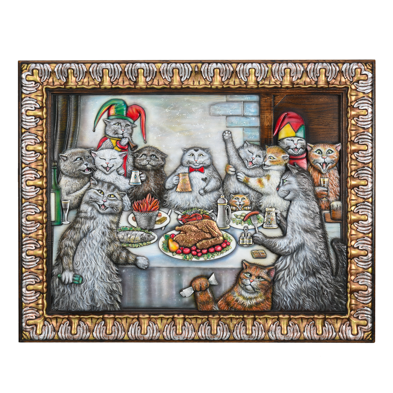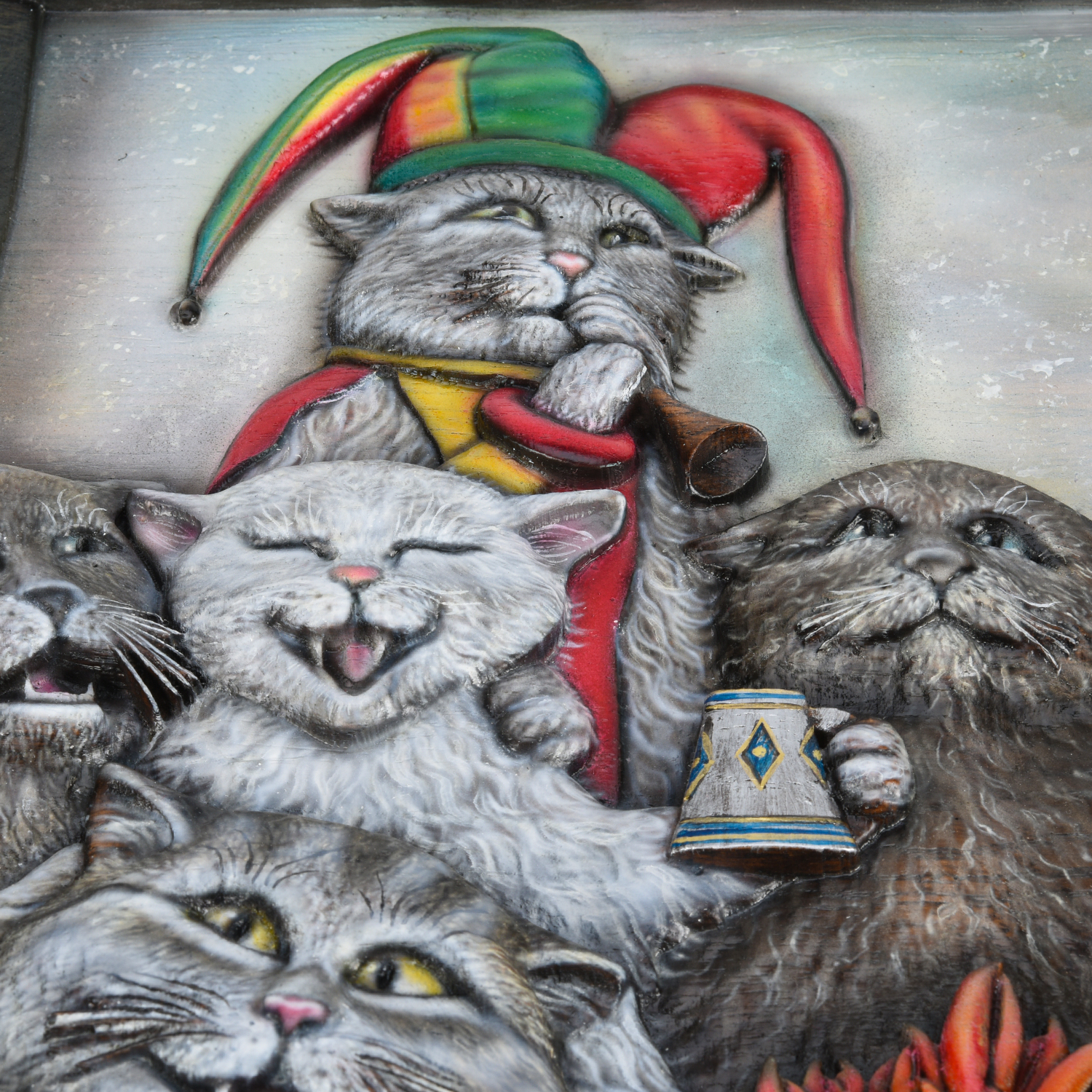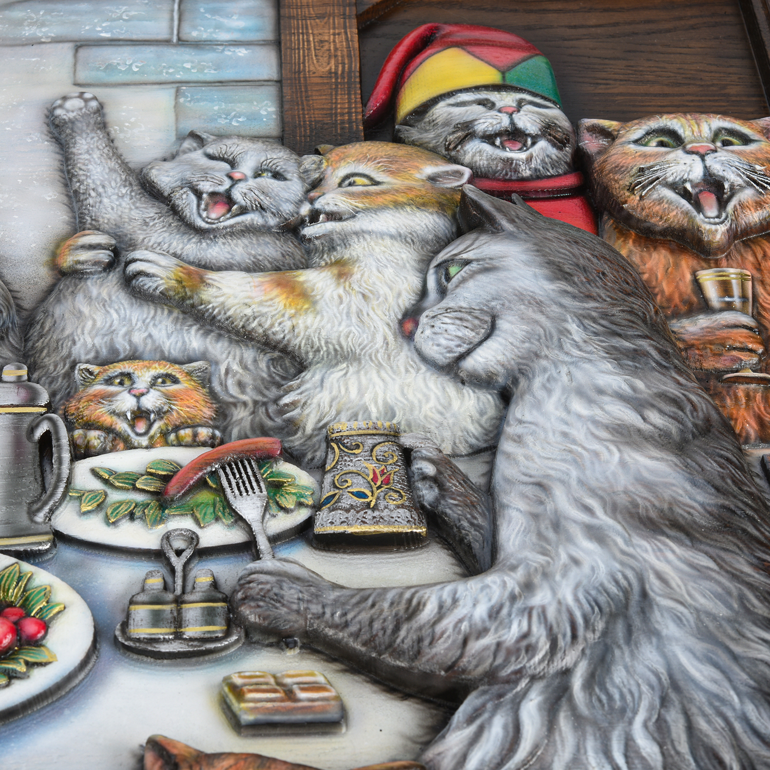 Панно деревянное резное "Коты" 69х55 см