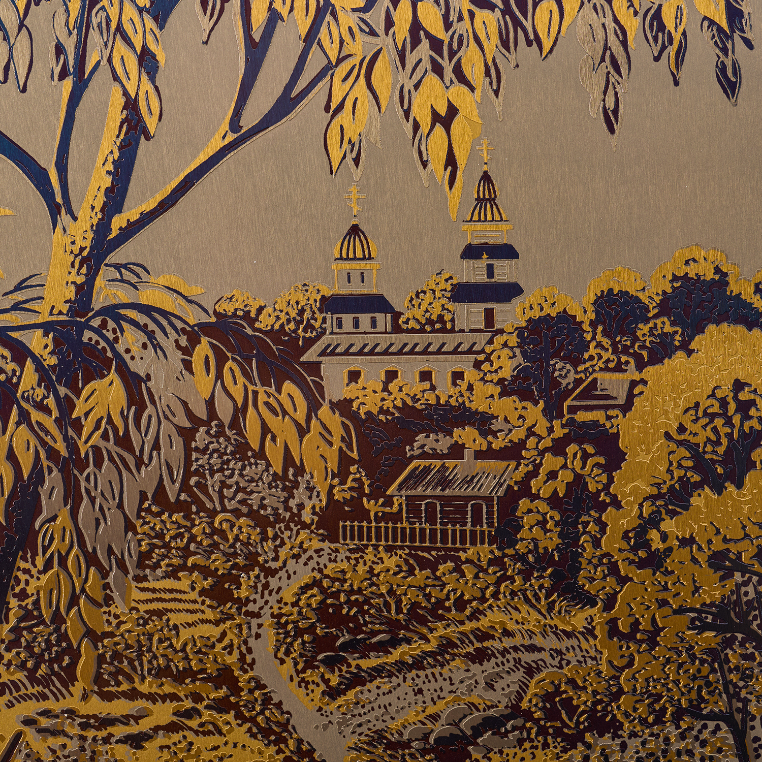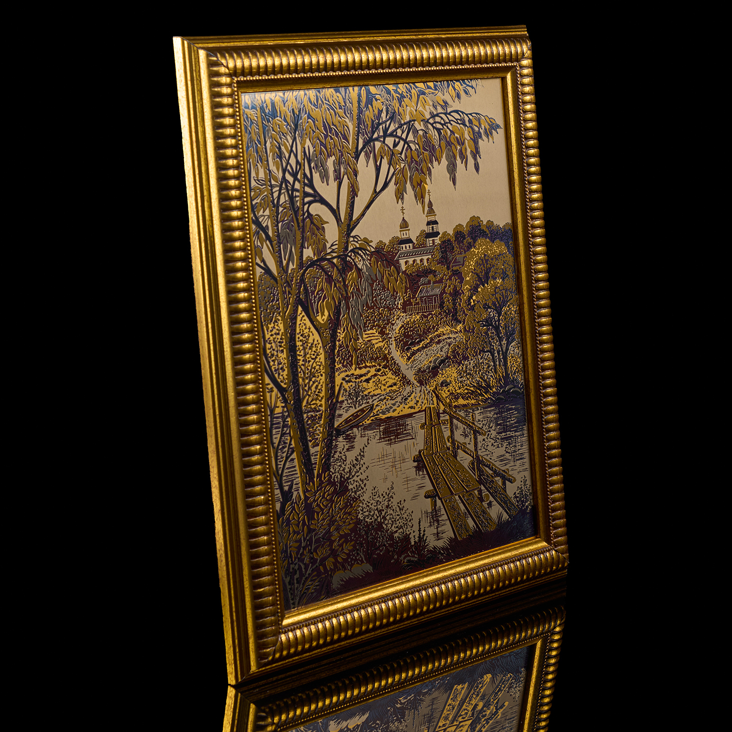 Панно-гравюра "Берёзовый мосток". Златоуст 28х35 см