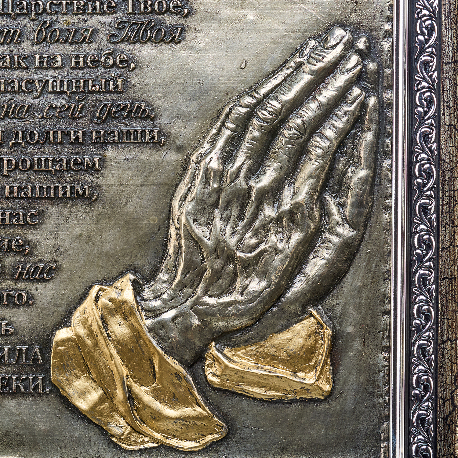 Панно "Отче наш".Материалы: гальванопластика (медь, серебрение, золочение).