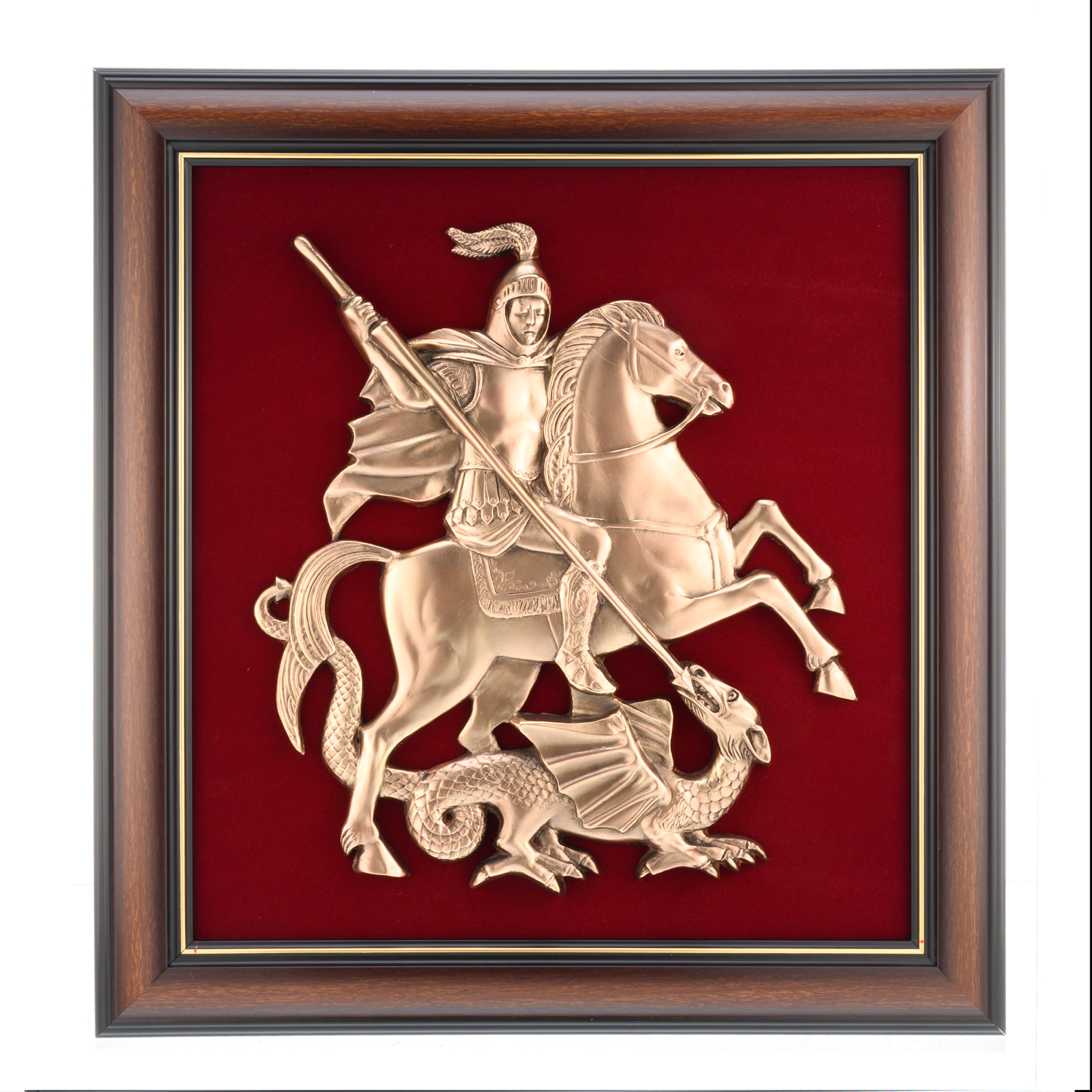 Панно-плакетка "Герб Москвы". Гальванопластика.Материалы: медь, бархат, дерево.