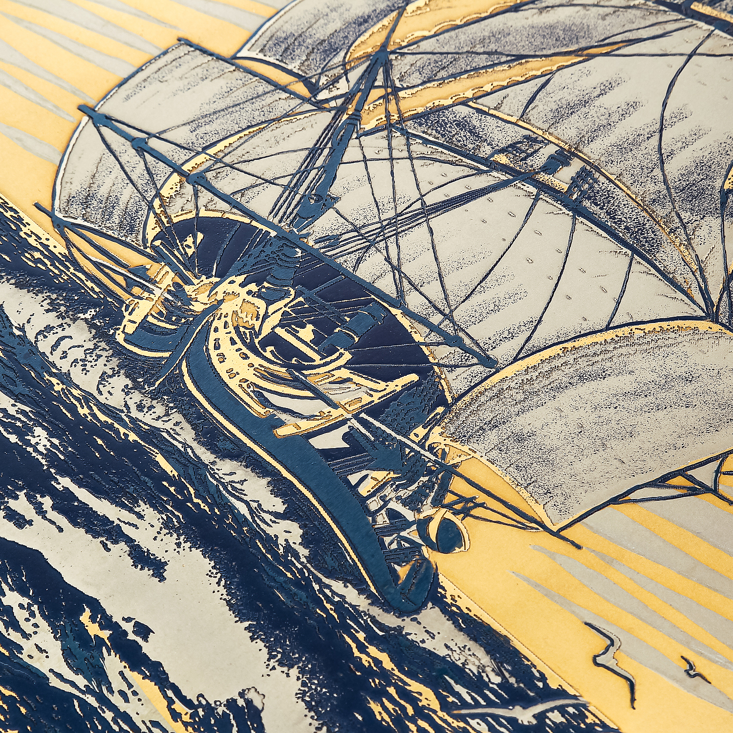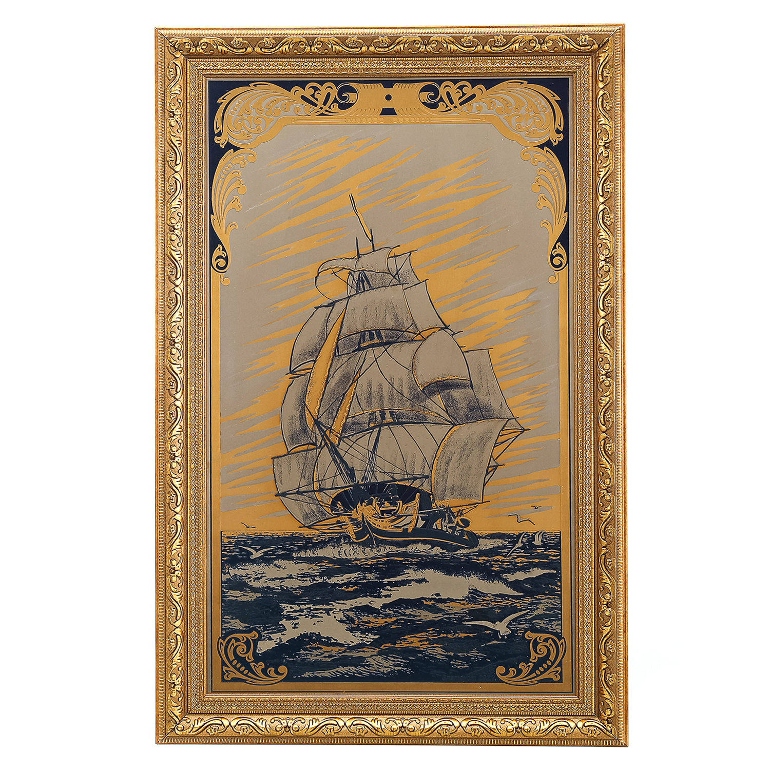 Панно-гравюра "Фрегат Надежда". Златоуст 37 х 57 см