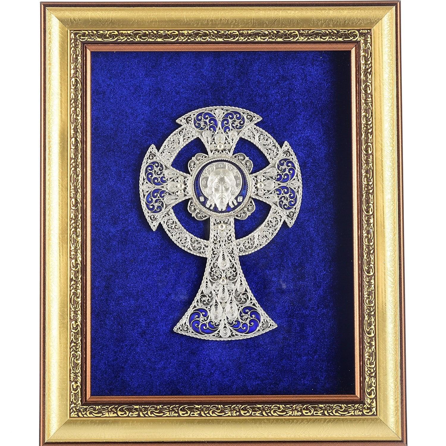 Паспарту обрамлено в широкую раму из золотистого багета, которая отлично сочетается с серебристым цветом символа и благородным синим оттенком бархата. Эксклюзивная, авторская работа художника по металлу, панно "Крест" убережет от напастей, укрепит веру, силу духа, сохранит домашний очаг, принесет удачу и счастье домочадцам. Это вариант универсального подарка на Новый год, Рождение, Юбилей и Новоселье, общий или личный праздник. .