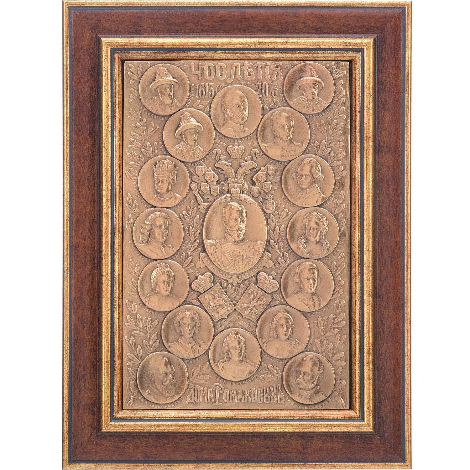 Панно "Дом Романовых" - образец современного промысла, гальванопластики от художника по металлу.Композиция из медальонов с образами русских правителей - императоров и императриц из династии Романовых -выполнена на медной пластине.
