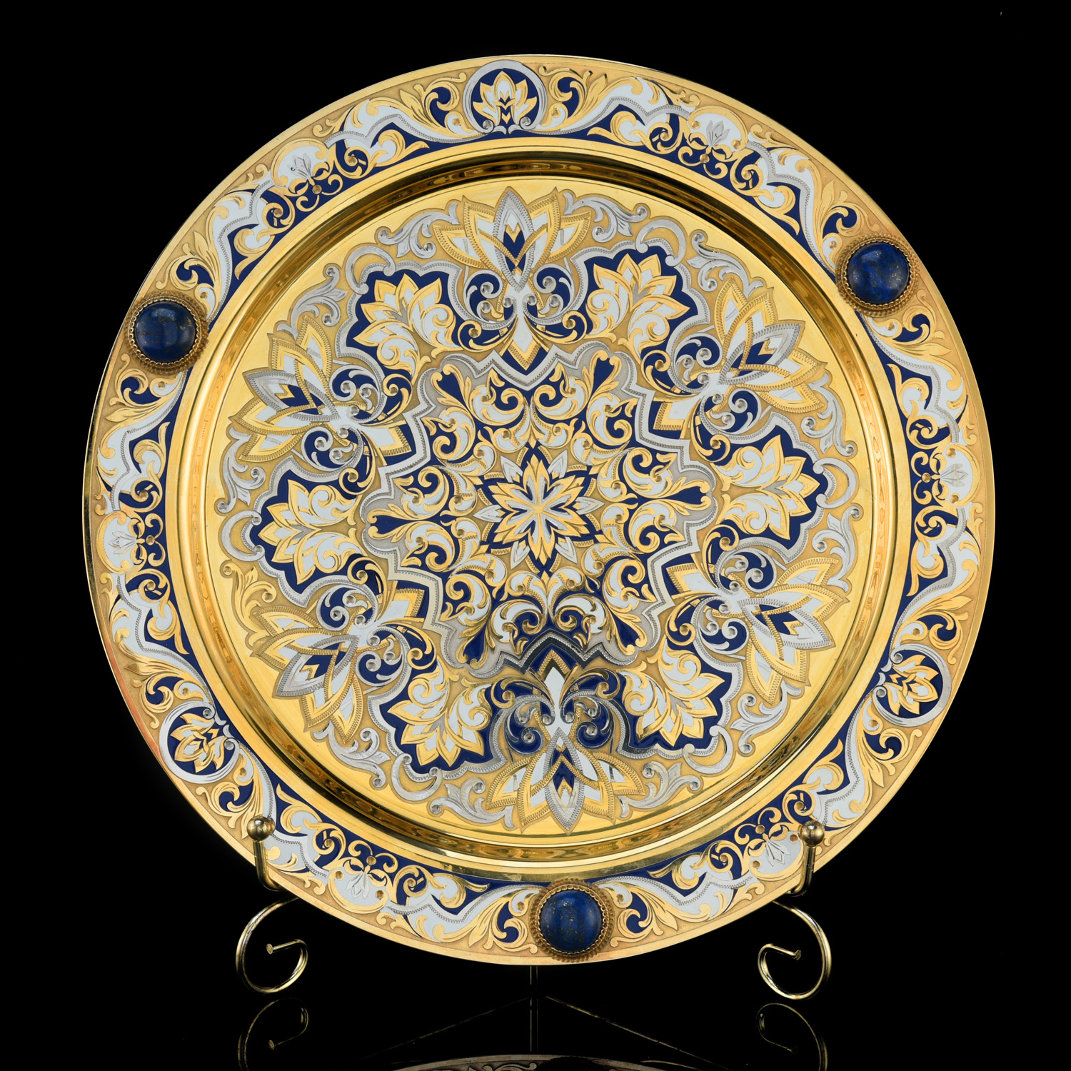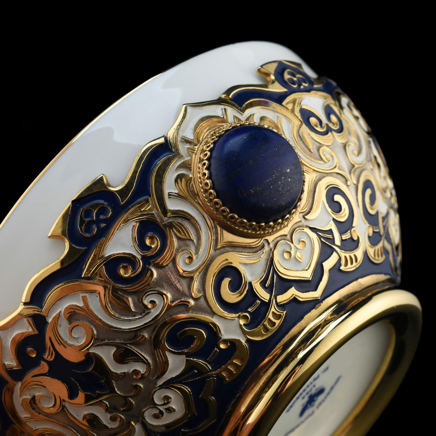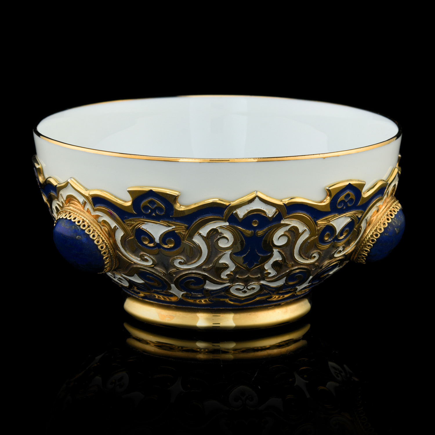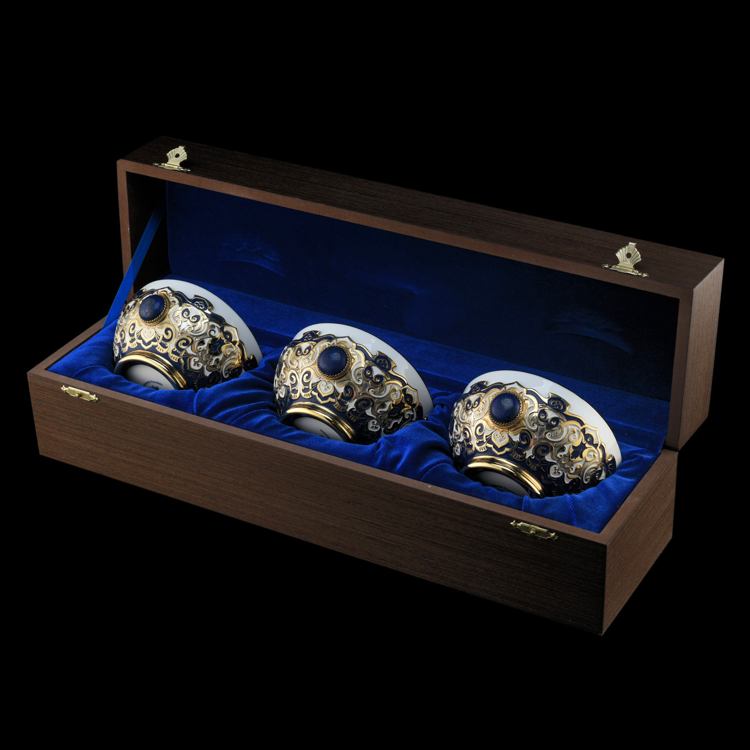 Набор из трех пиал "Восточный". Златоуст.Материалы: фарфор, латунь, никель, золото 999,9*, эмаль, лазурит.