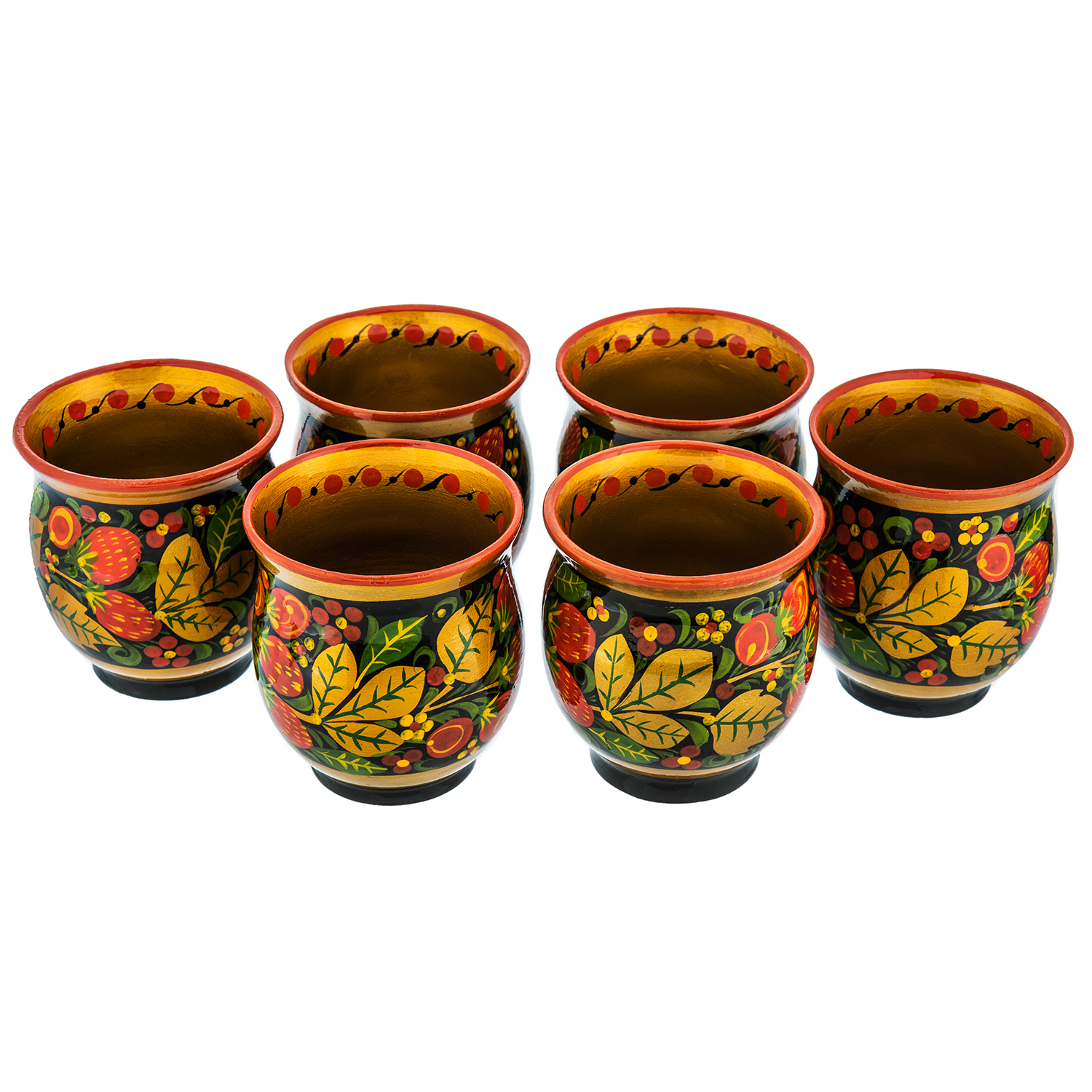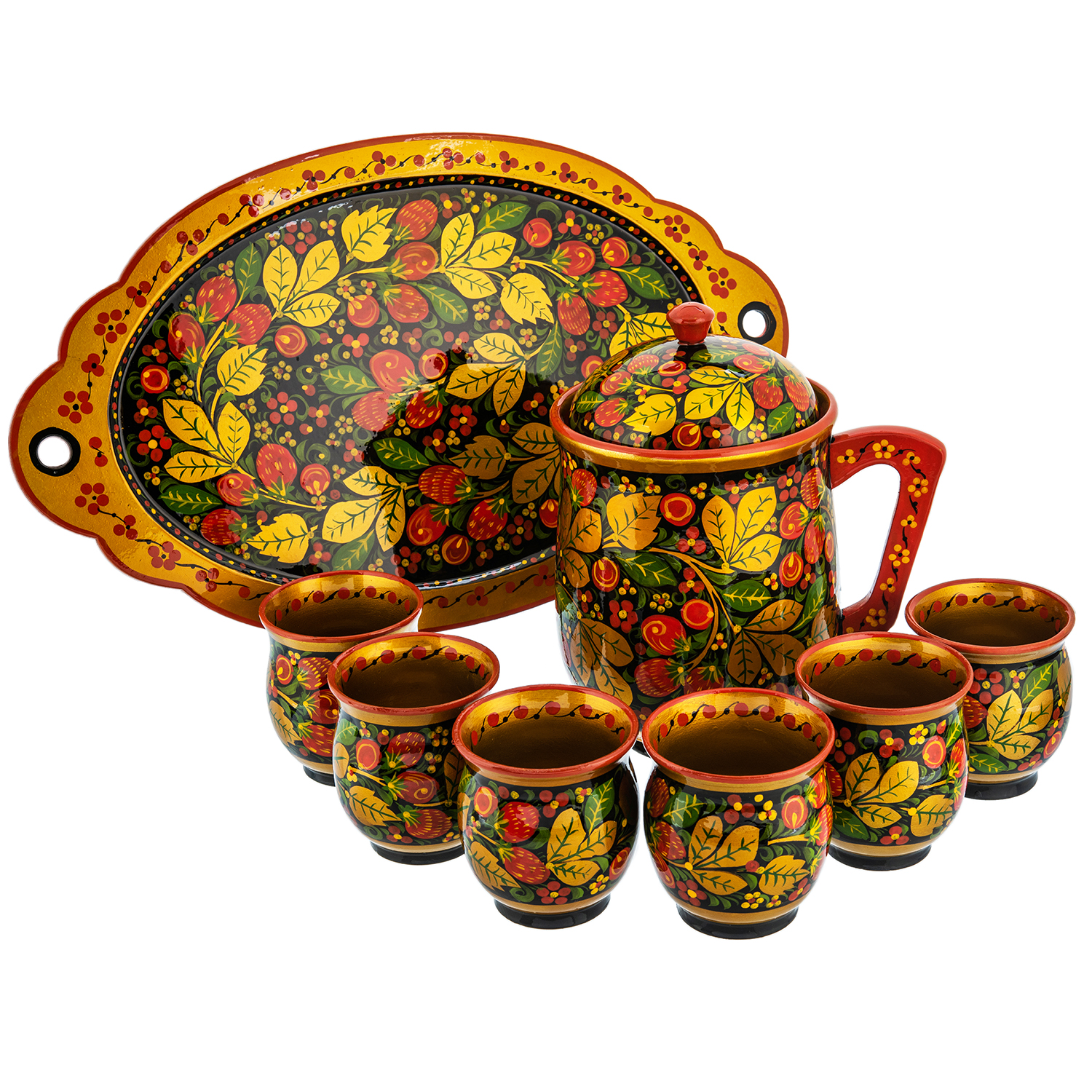 Русские подарки и сувениры → Посуда → Питейные наборы → Питейный набор для кваса "Клубника". Хохлома