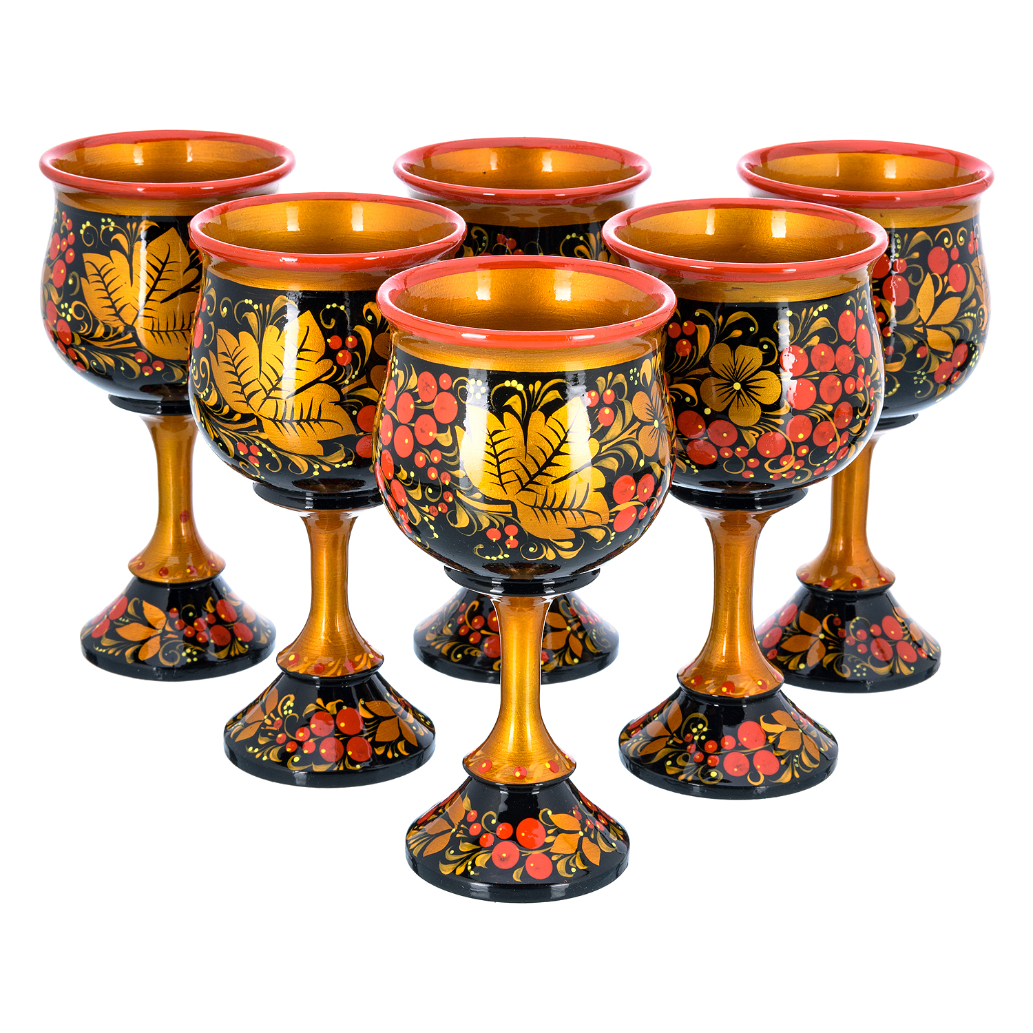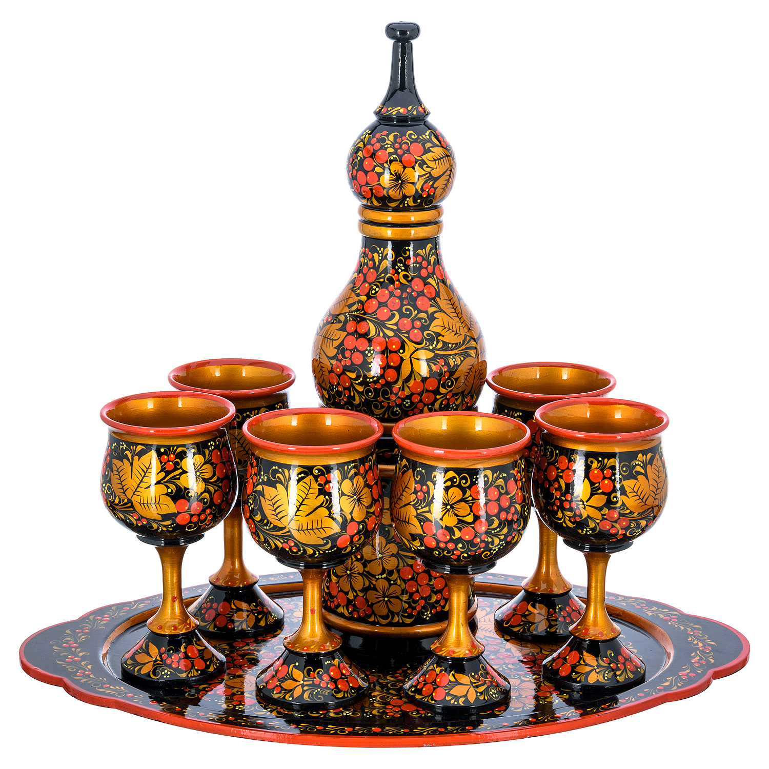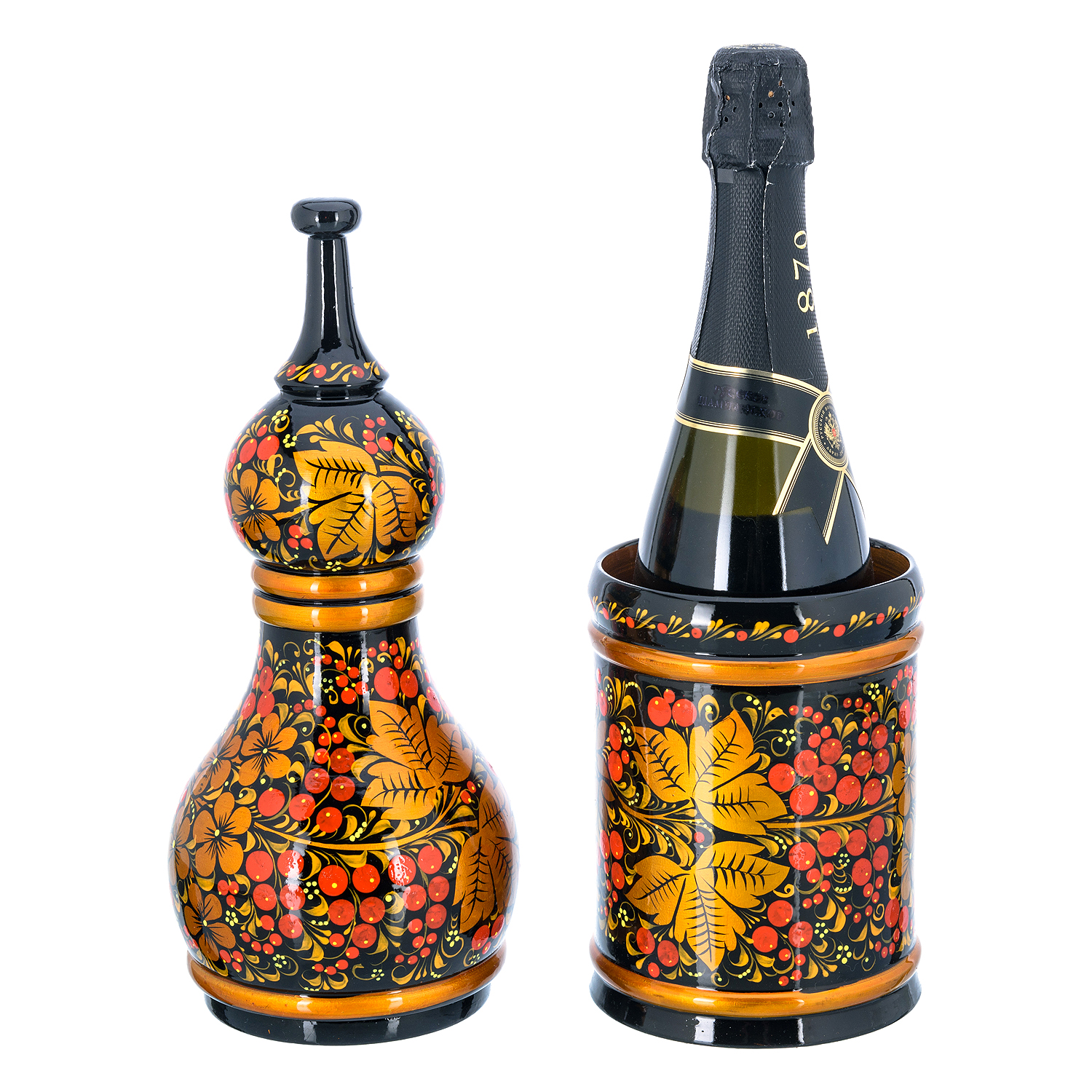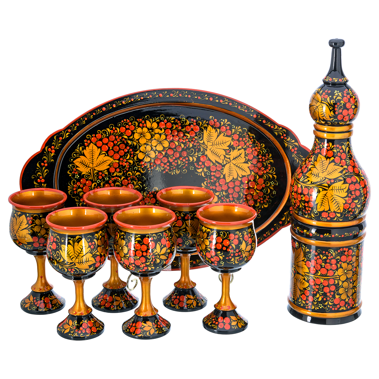 Питейный набор для шампанского на 6 персон "Рябина". Хохлома