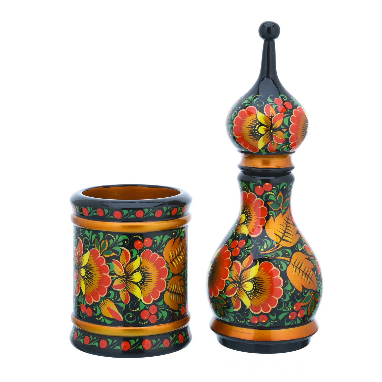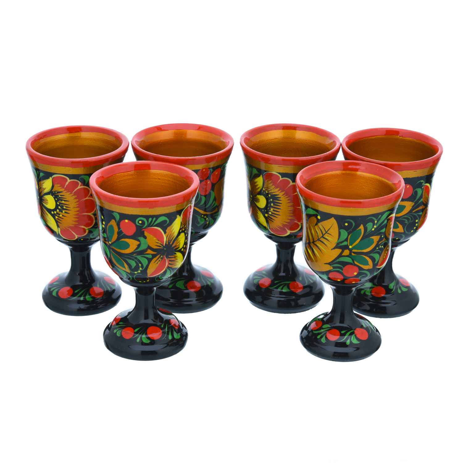 Питейный водочный набор на 6 персон "Цветы". Хохлома