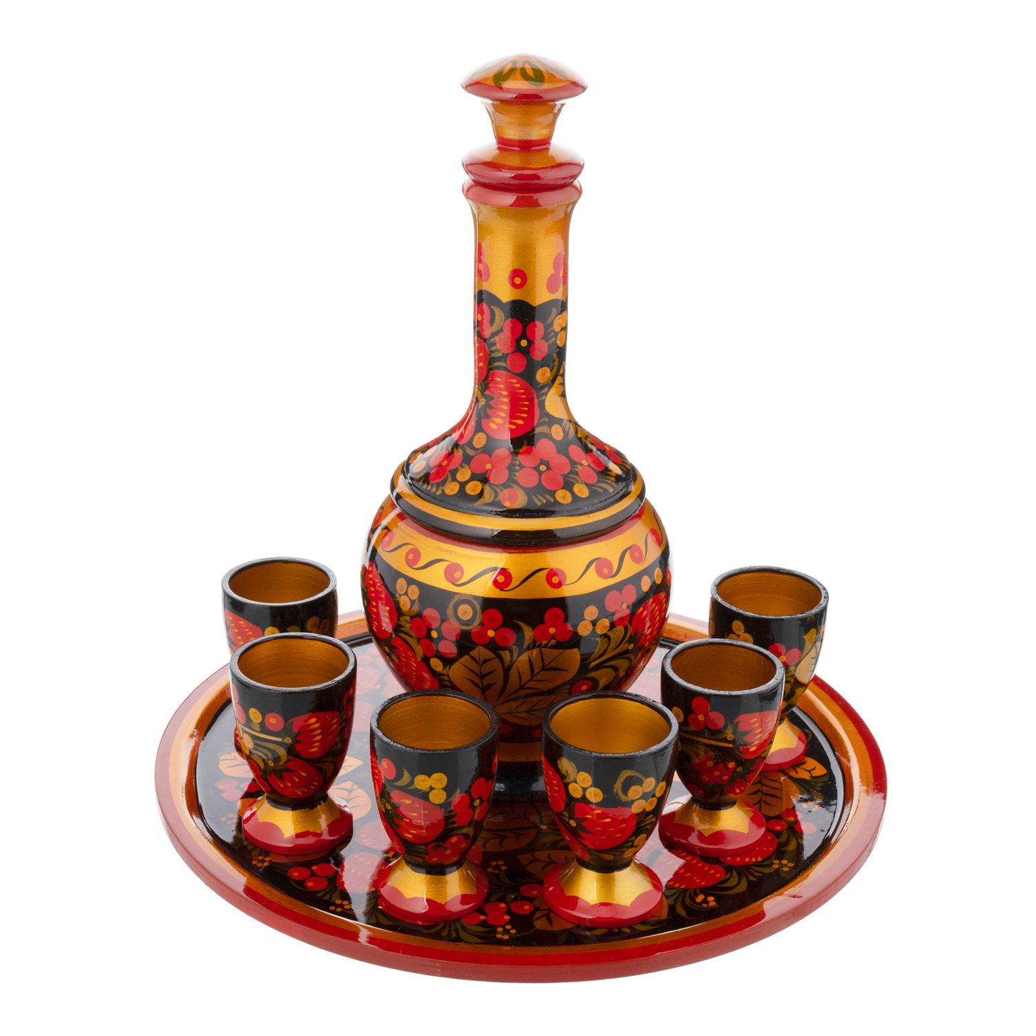Питейный набор на 6 персон "Водочный". Хохлома