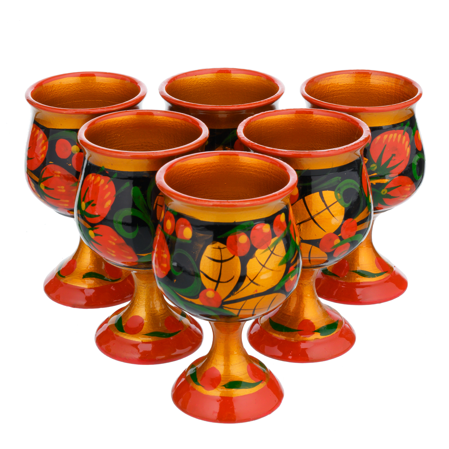 Питейный набор на 6 персон с росписью. Хохлома.Материалы: дерево, краски, лак.