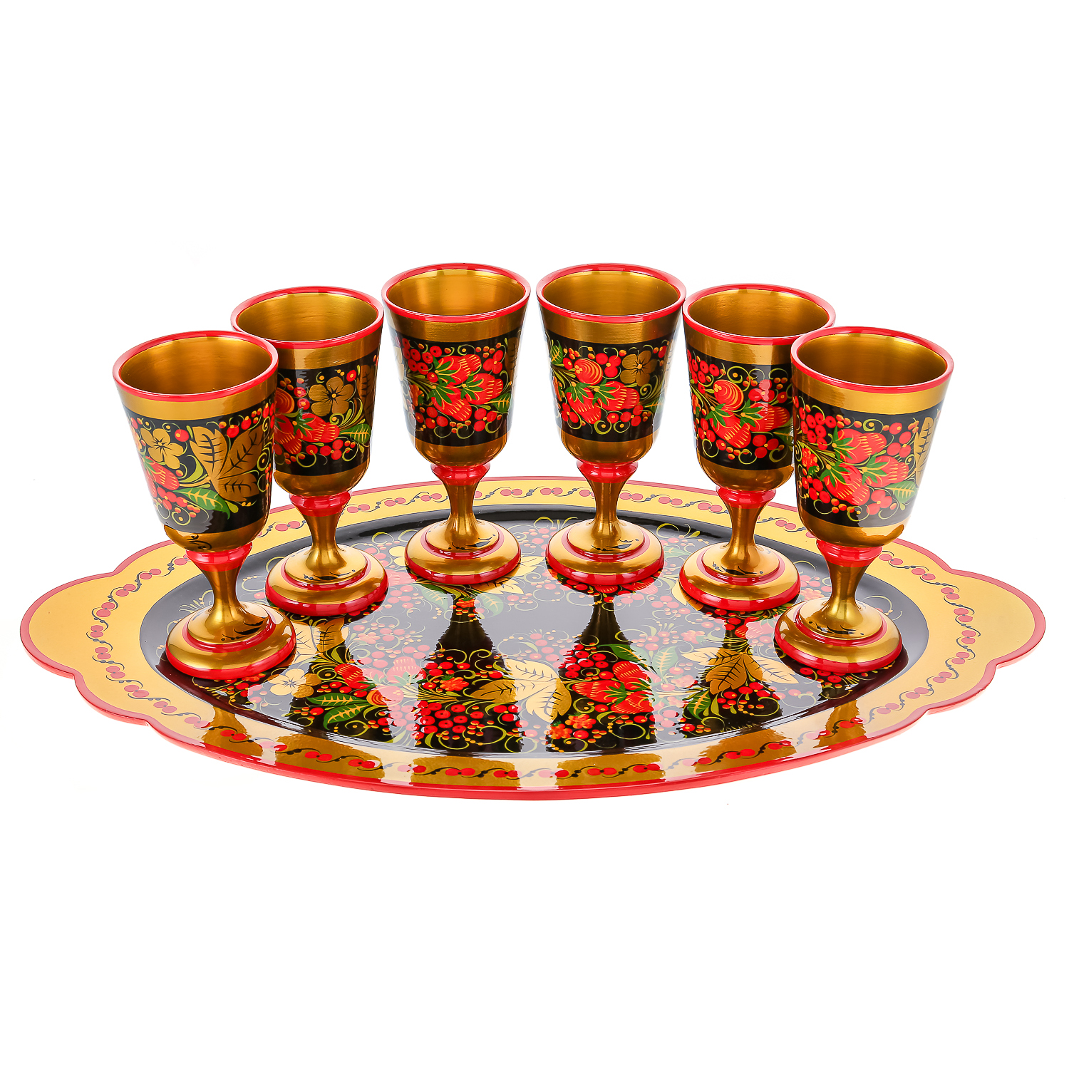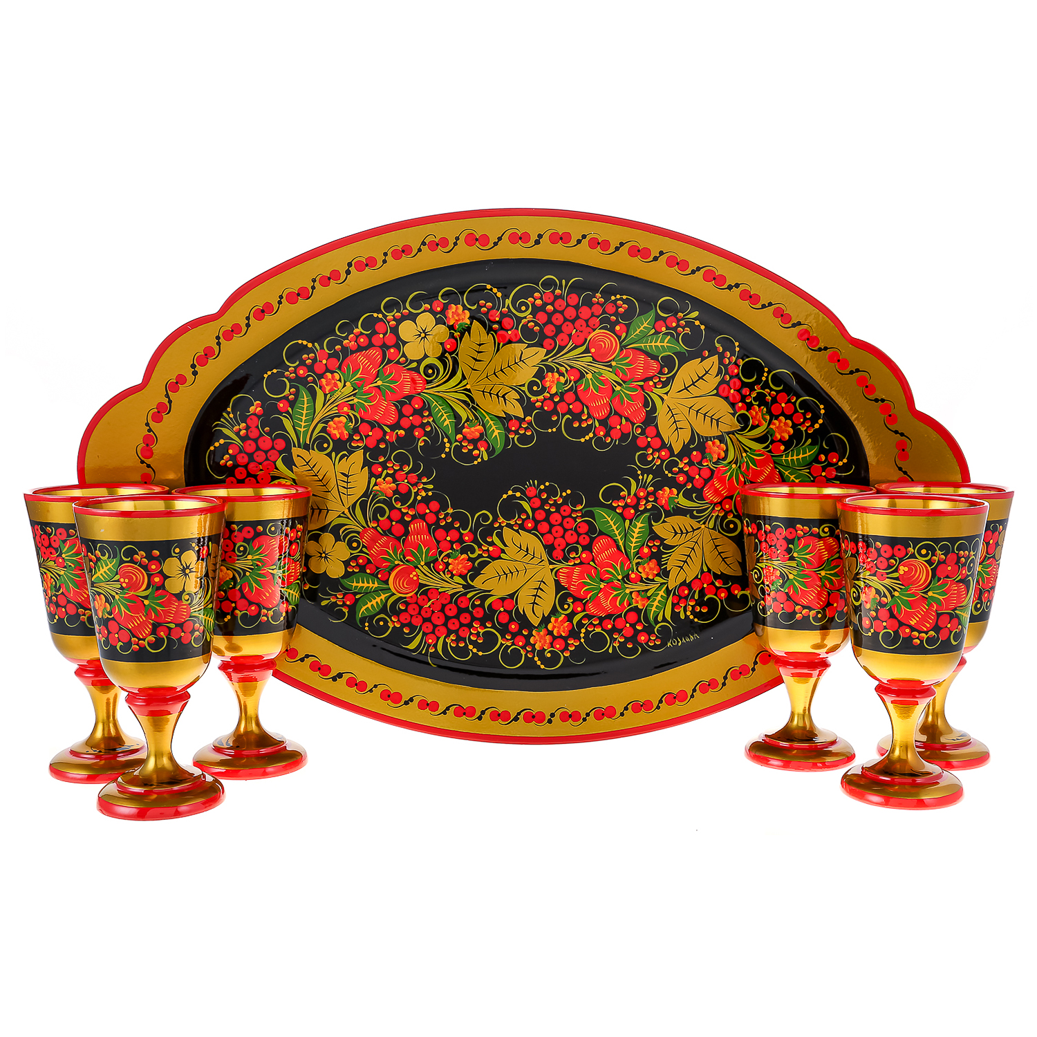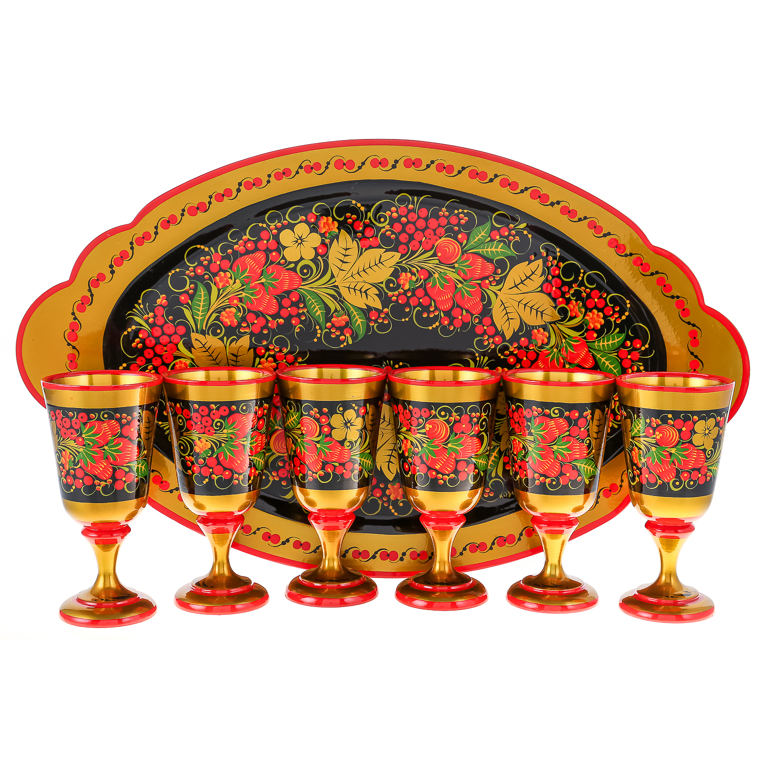Русские подарки и сувениры → Посуда → Питейные наборы → Питейный набор для шампанского "Встреча". Хохлома