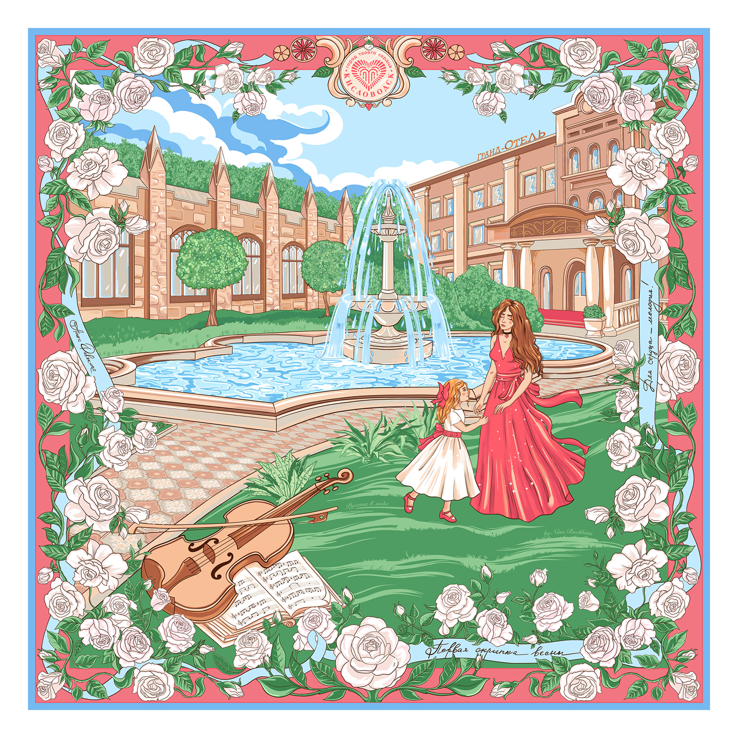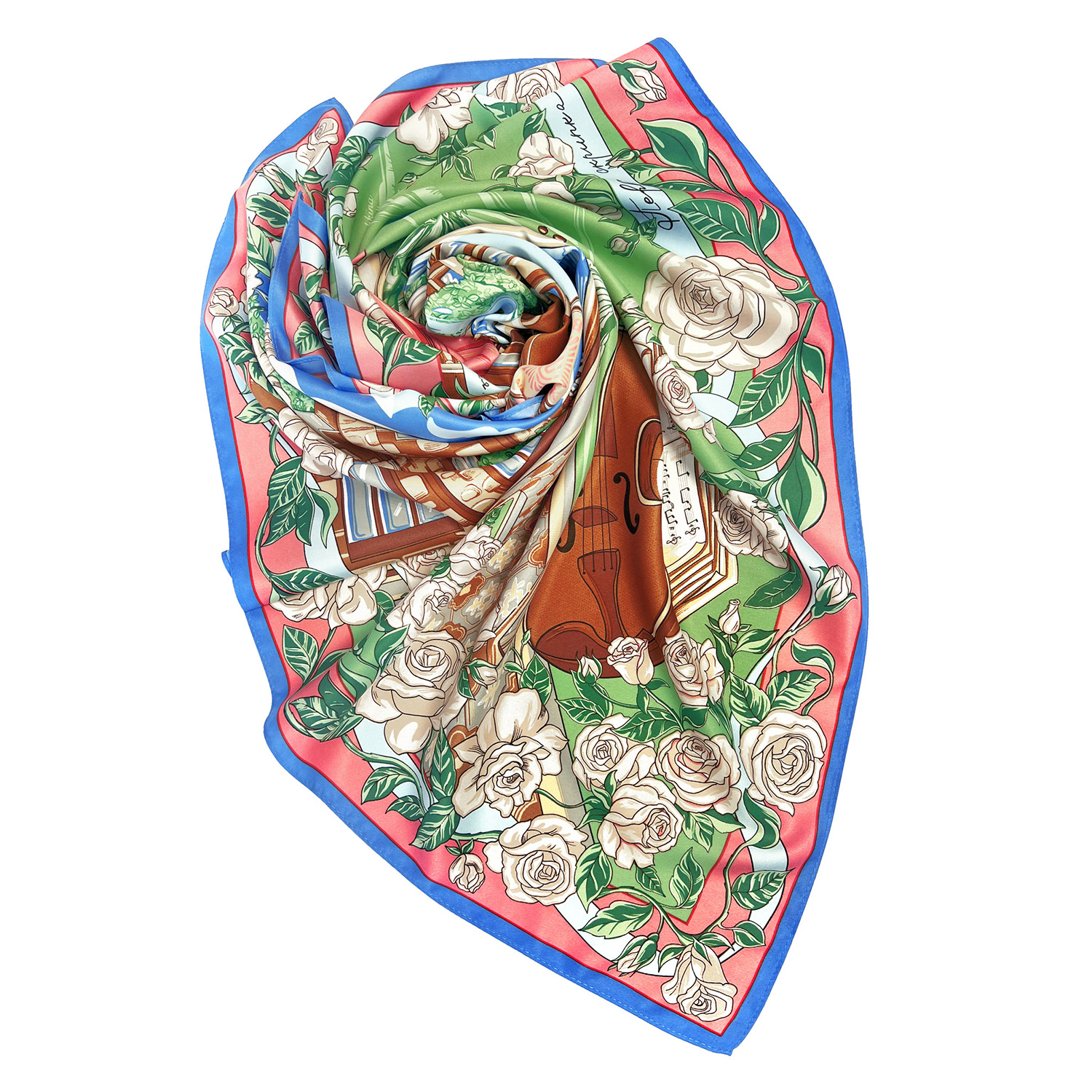 Платок шелковый "Первая скрипка весны" 90х90 см