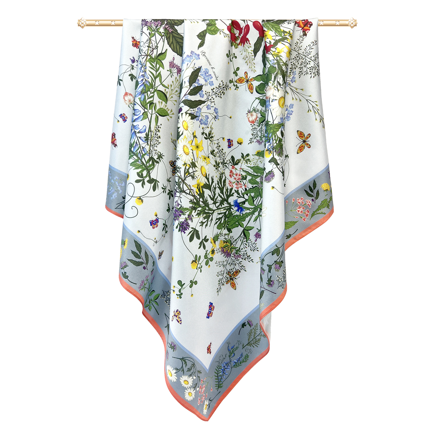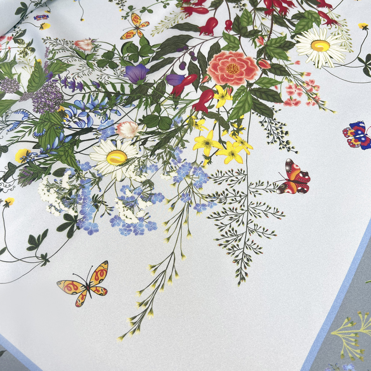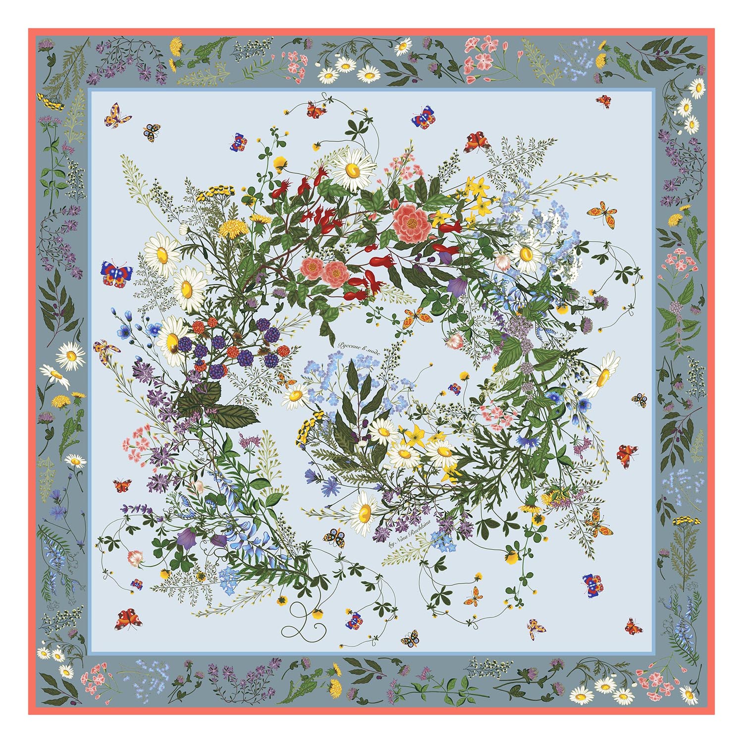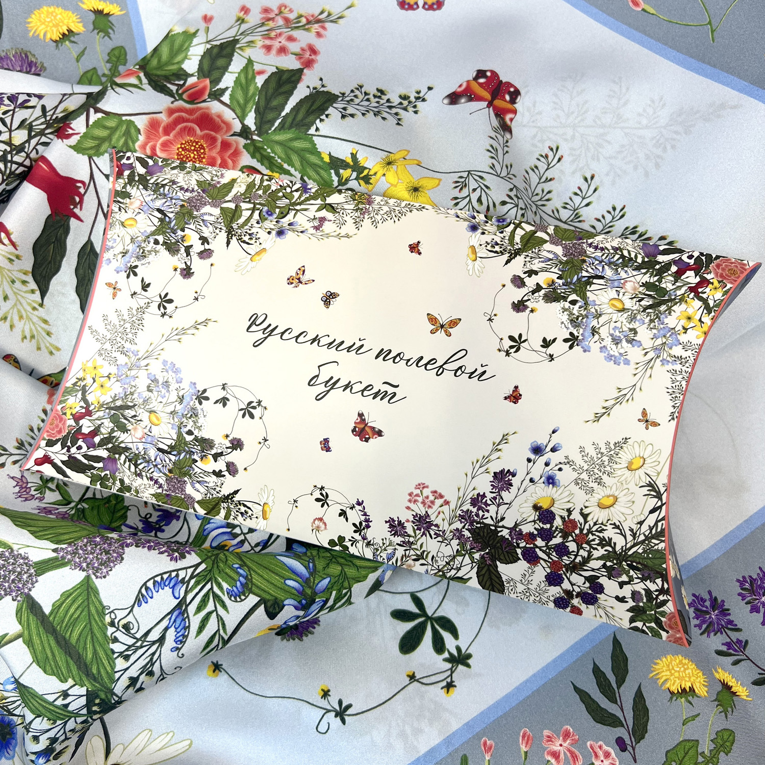 Платок шелковый "Русский полевой букет" 90х90 см.
