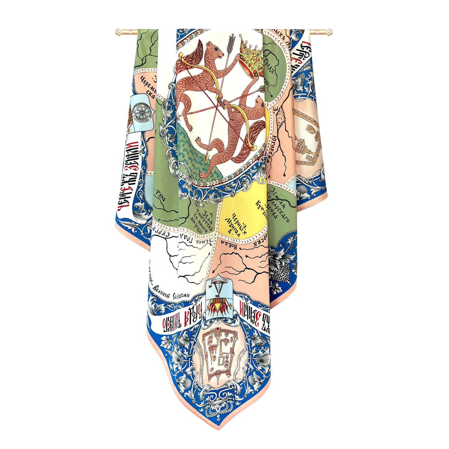 Шелковый платок "Карты Ремезова" 90х90 см