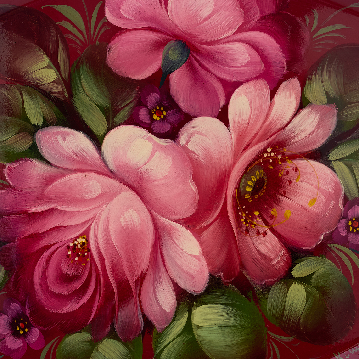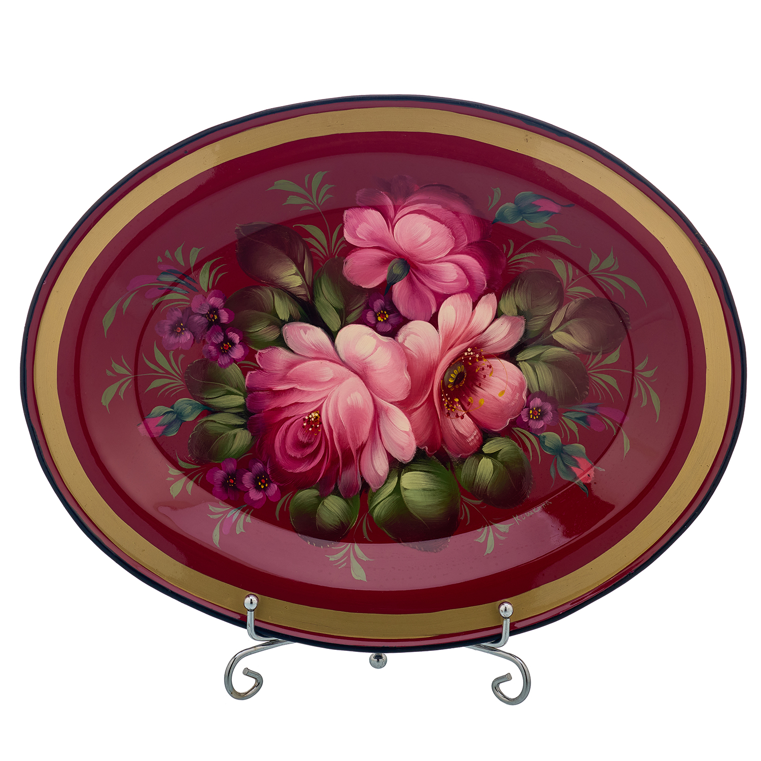 Поднос с авторской росписью "Цветы".Материалы: сталь, краски, лак.