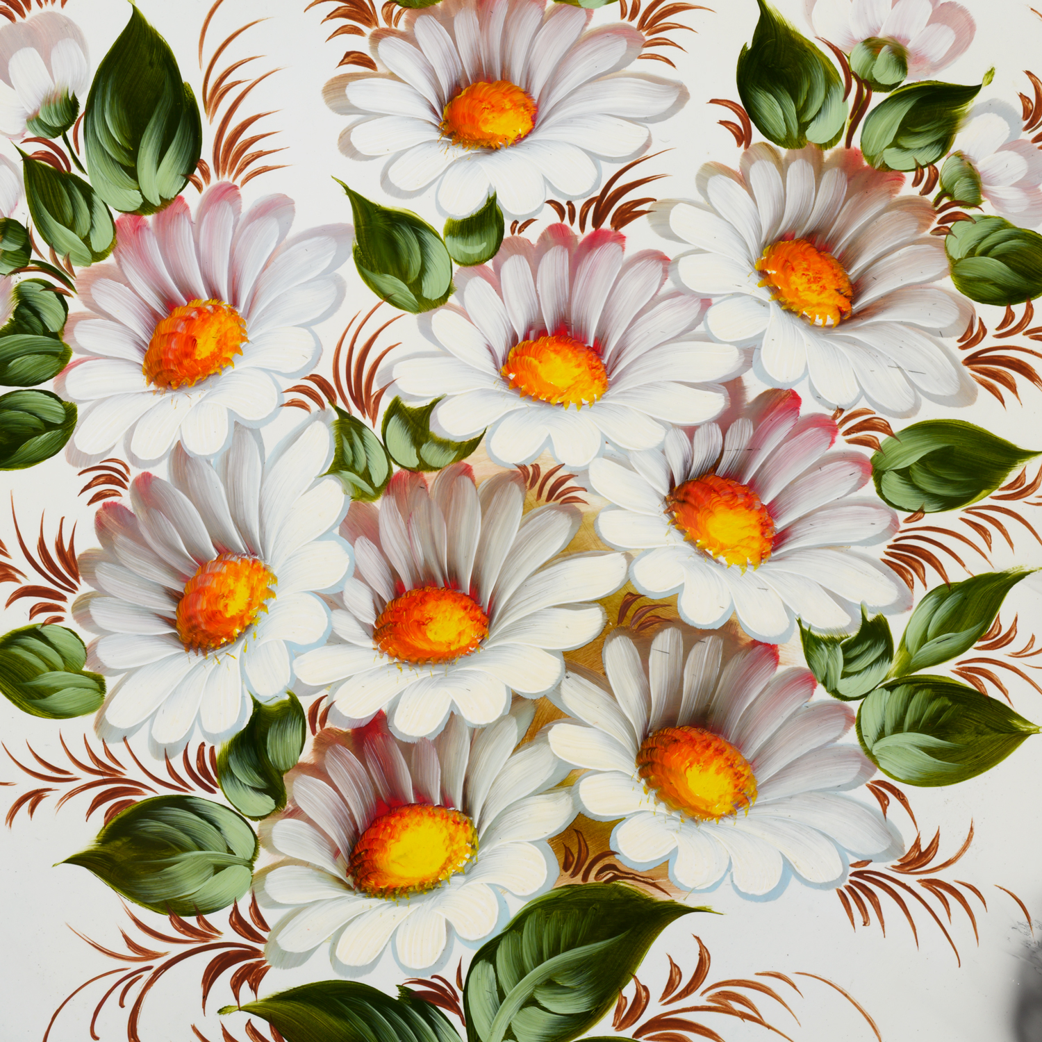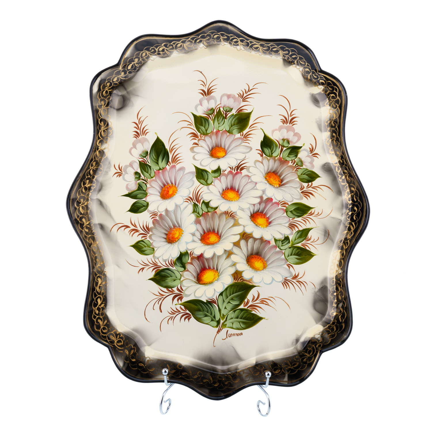 Поднос сувенирный с ручной росписью "Ромашки".Материалы: сталь, краски, лак.