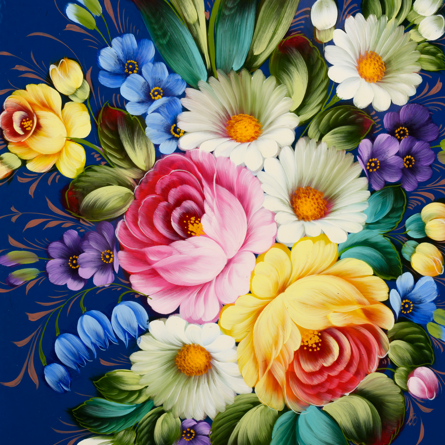 Поднос сувенирный с ручной росписью "Цветы".Материалы: сталь, краски, лак.