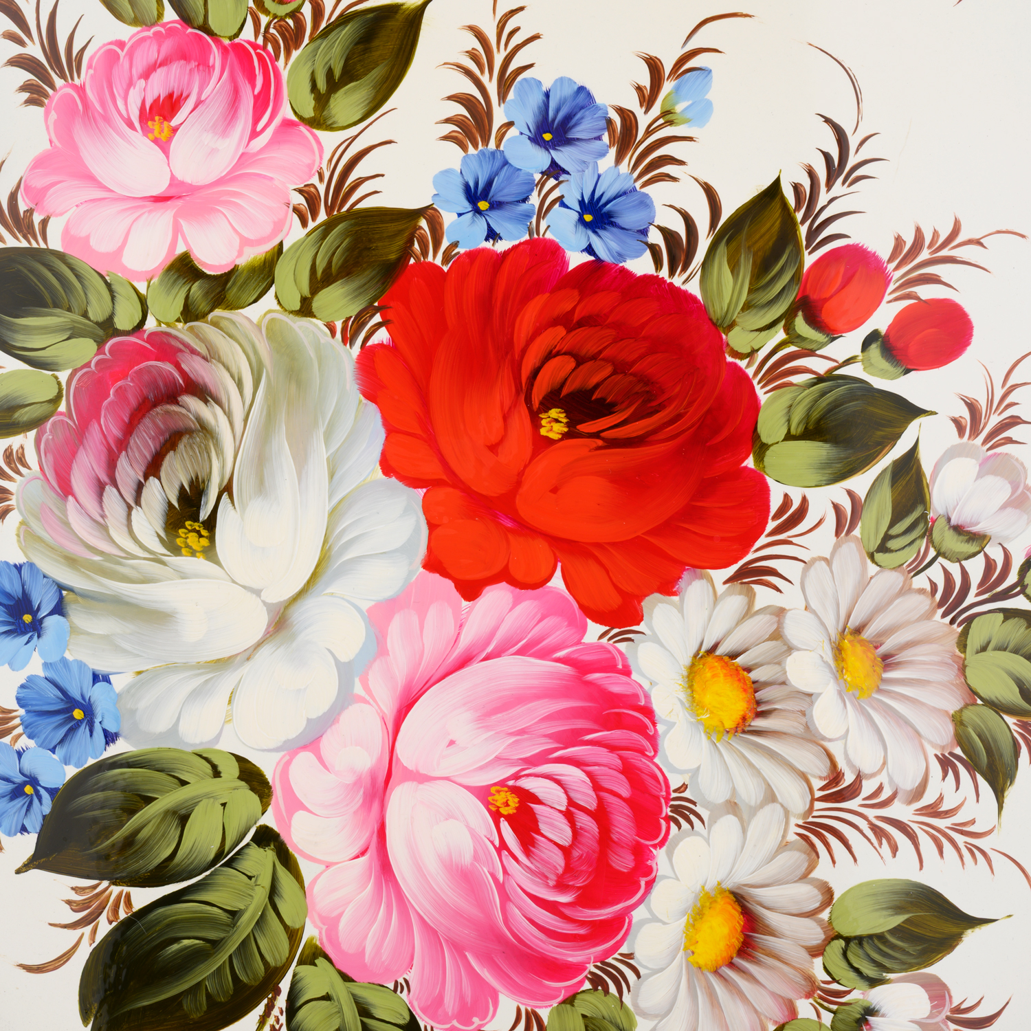 Поднос сувенирный с ручной росписью "Цветы".Материалы: сталь, краски, лак.