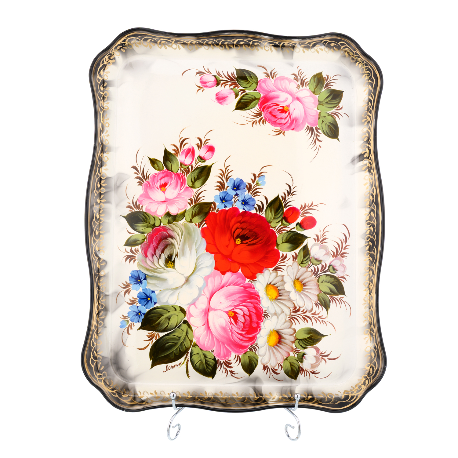 Русские подарки и сувениры → Посуда → Подносы → Поднос сувенирный с ручной росписью "Цветы" 40х30 см