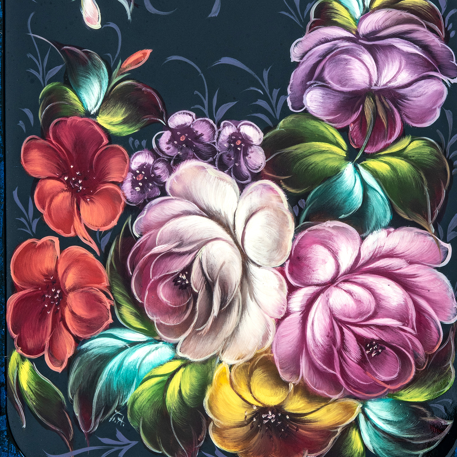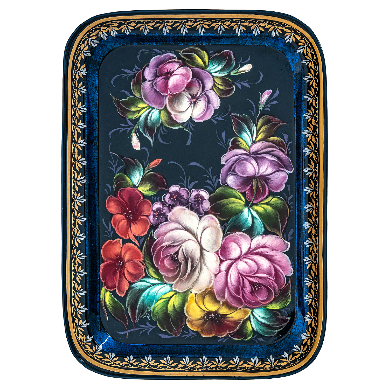 Поднос с авторской росписью "Цветы".