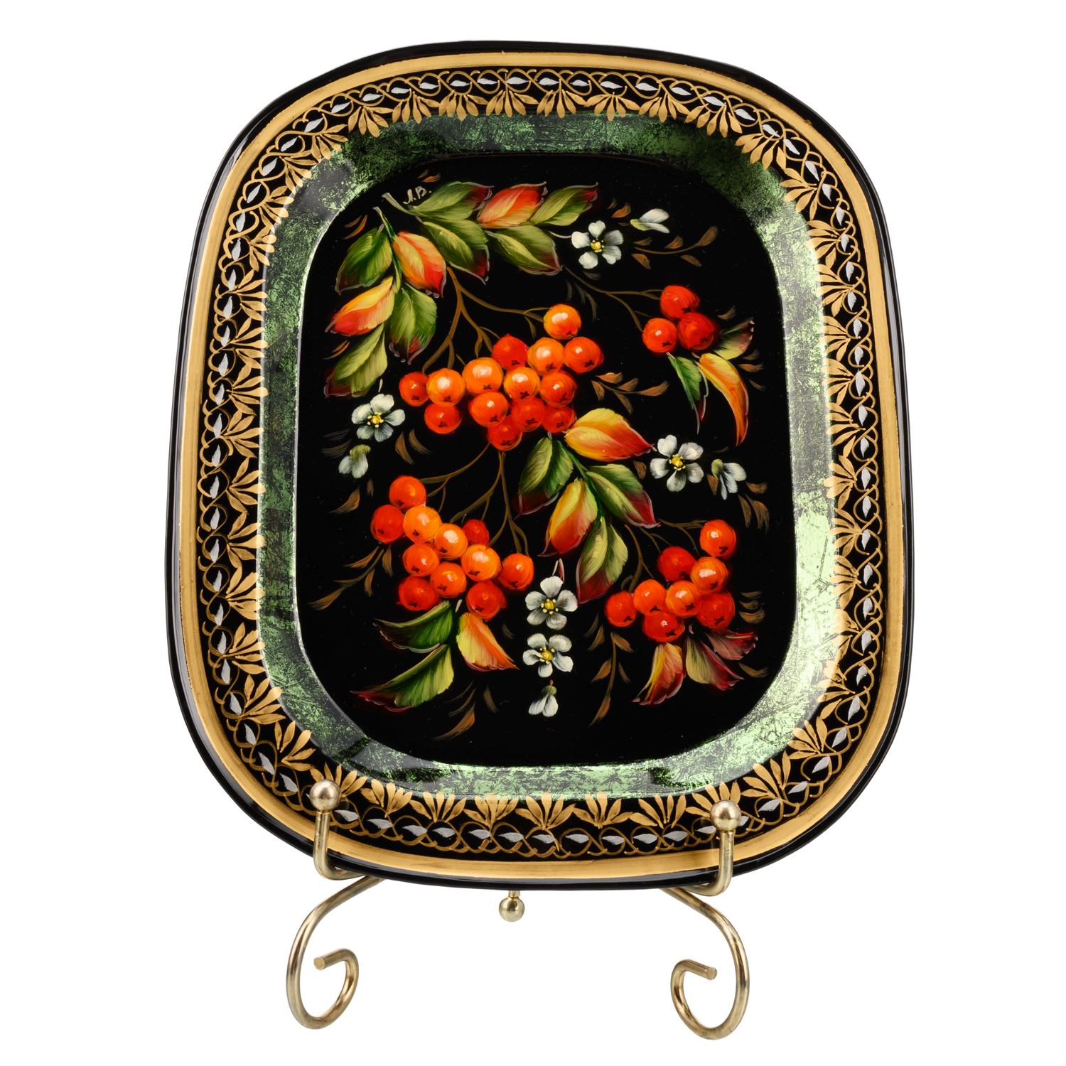 Поднос с авторской росписью "Рябина".Материалы: сталь, краски, лак.