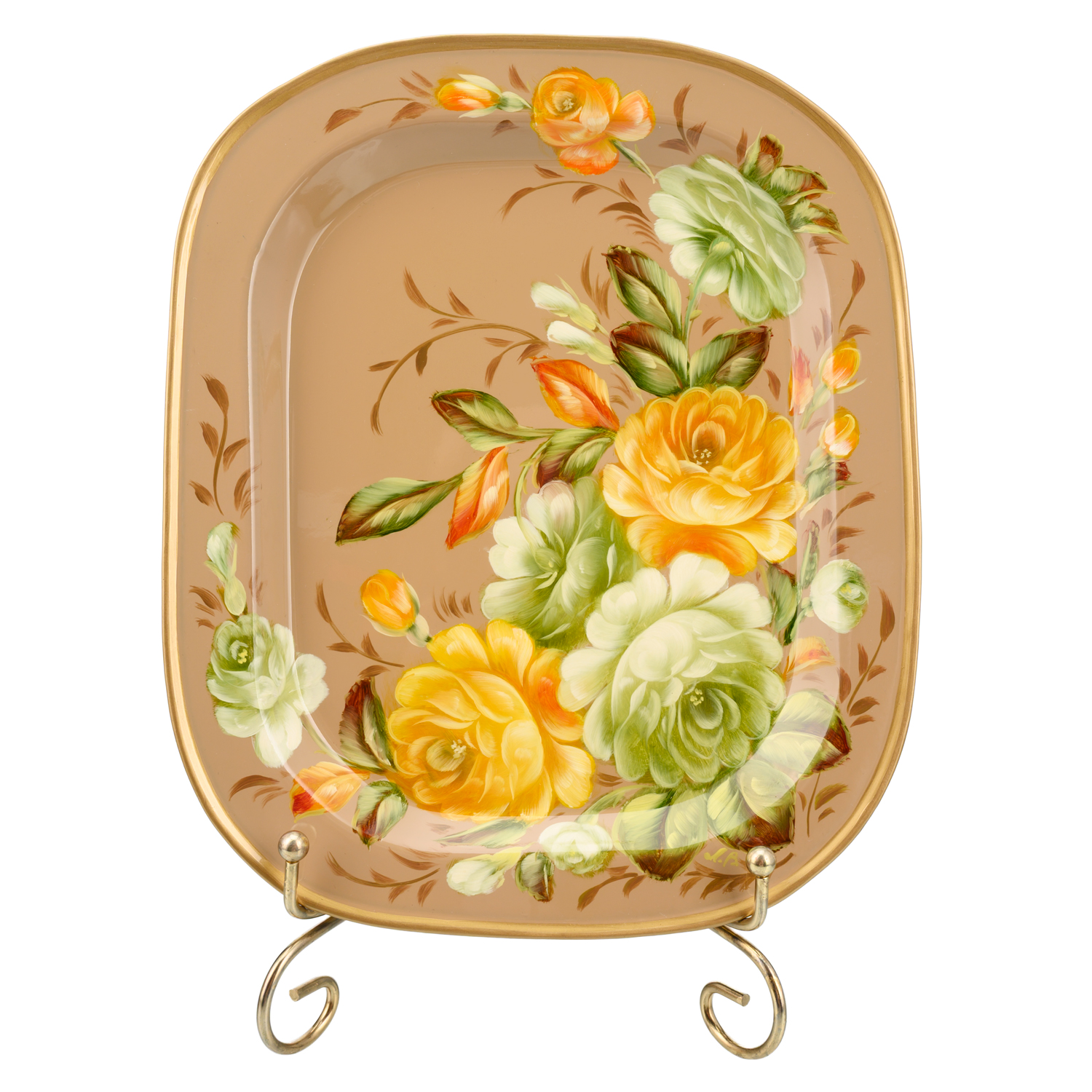 Поднос с авторской росписью "Цветы".Материалы: сталь, краски, лак.