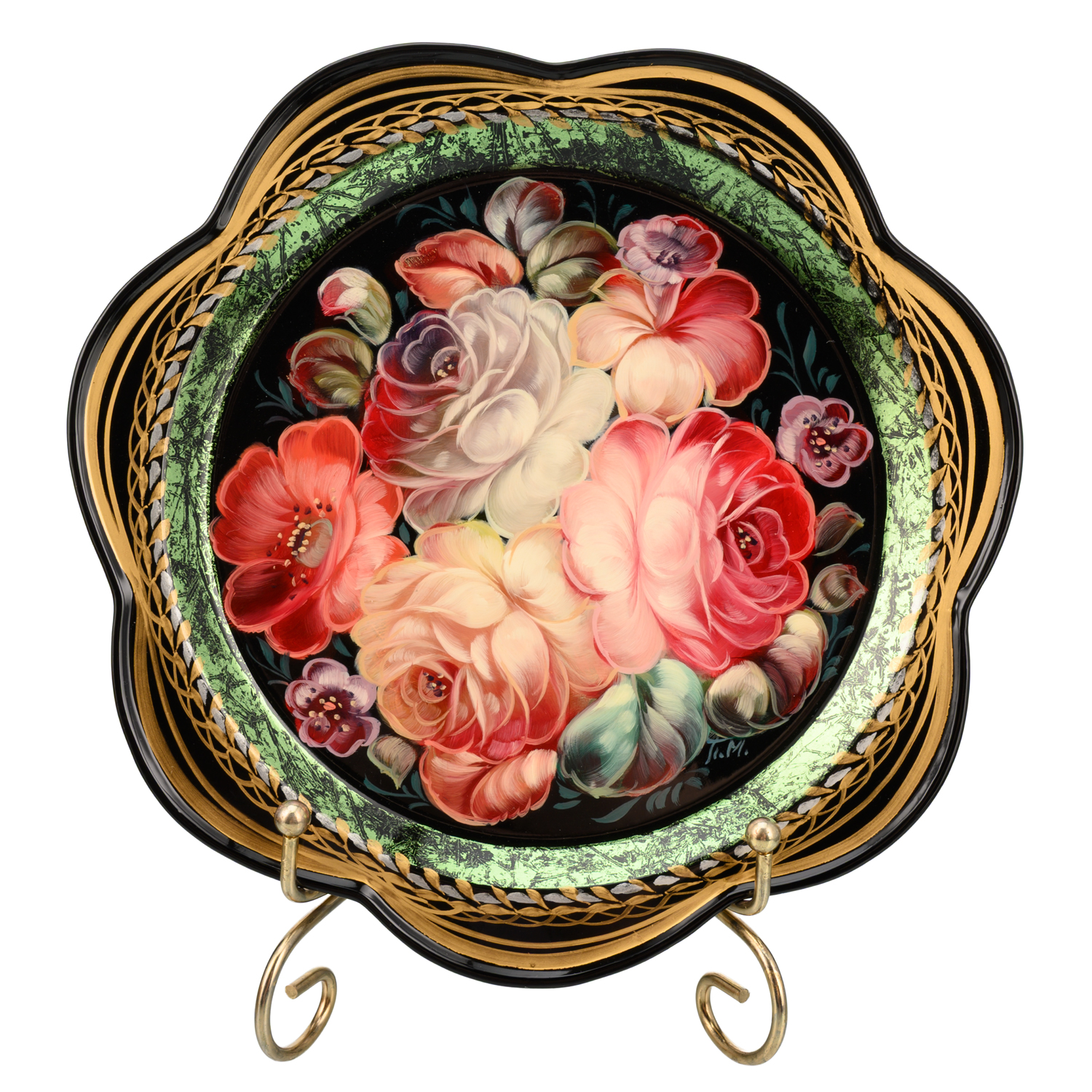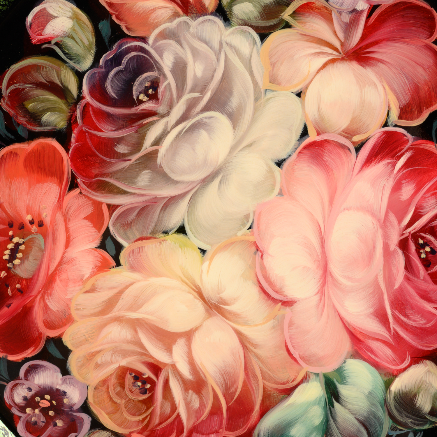 Поднос с авторской росписью "Цветы".Материалы: сталь, краски, лак.