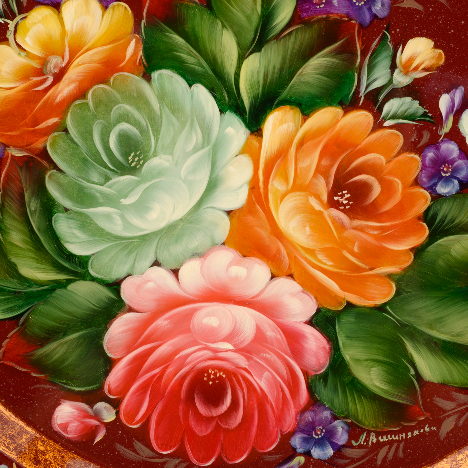 Поднос с авторской росписью "Цветы" 34х34 см