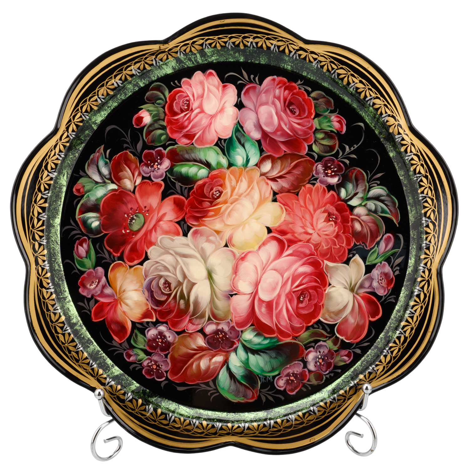 Поднос с авторской росписью "Цветы".Материалы: сталь, краски, лак.
