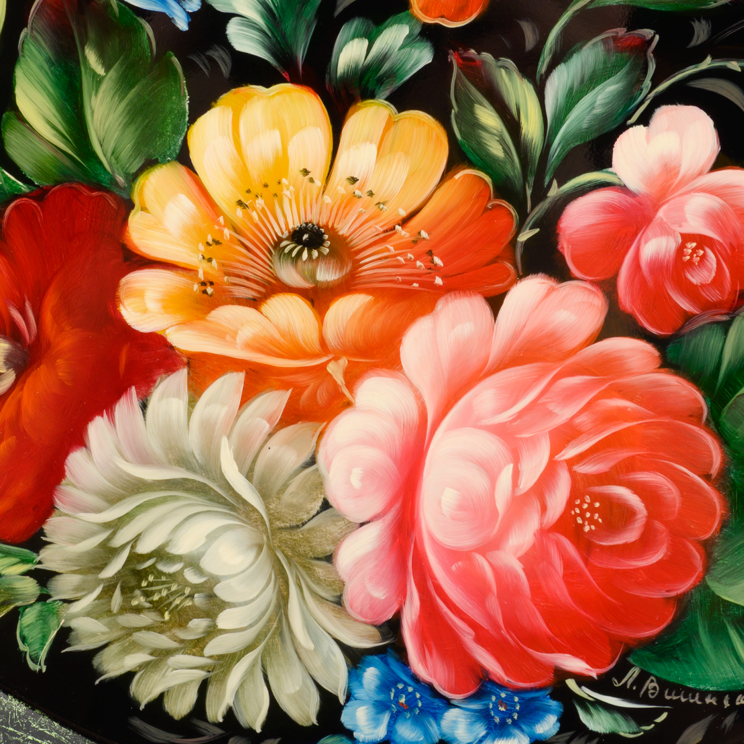 Поднос с авторской росписью "Цветы" 34х34 см