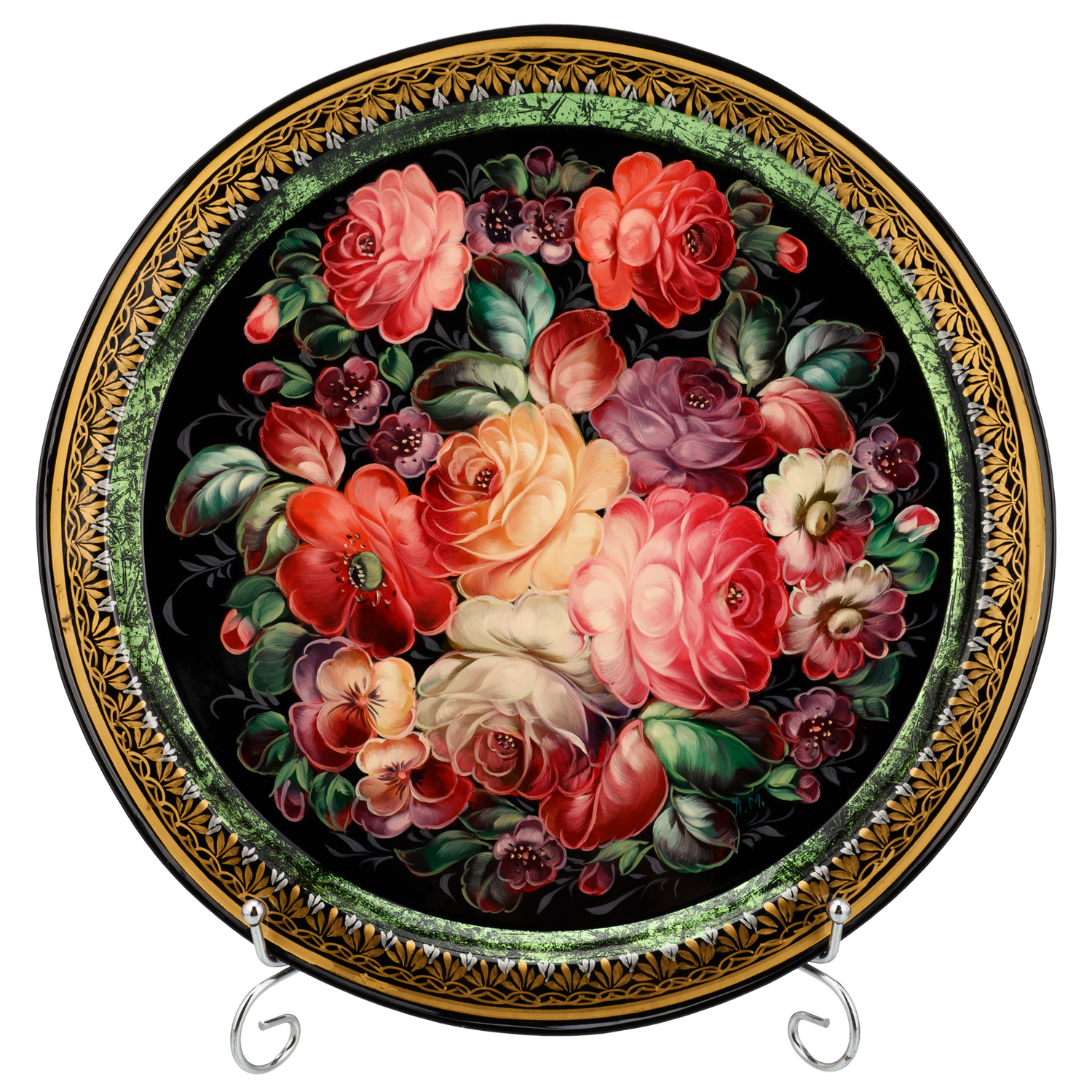 Поднос с авторской росписью "Цветы".Материалы: сталь, краски, лак.