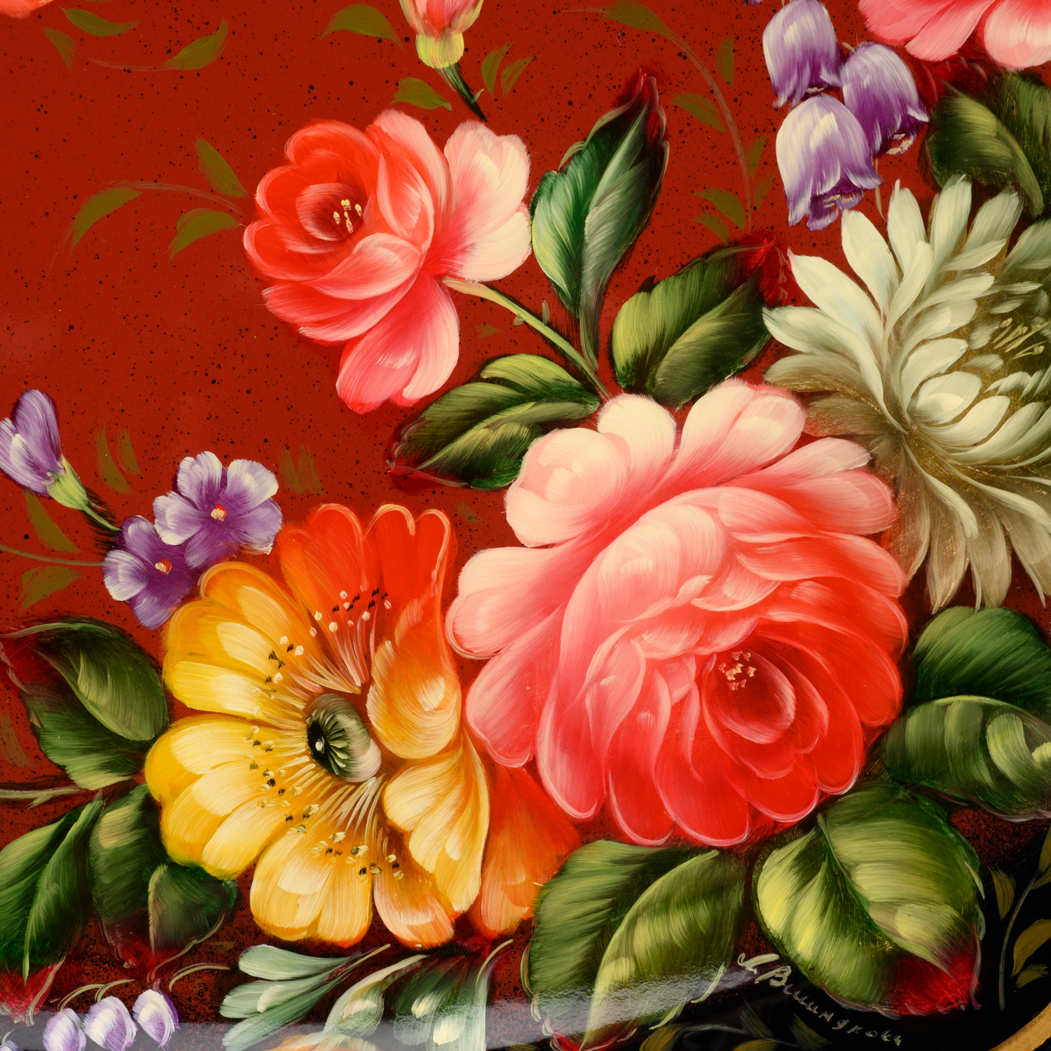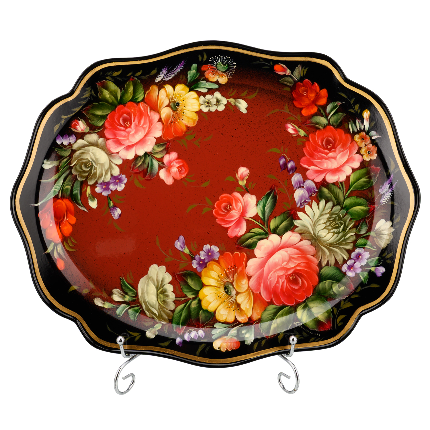 Поднос с авторской росписью "Цветы".Материалы: сталь, краски, лак.