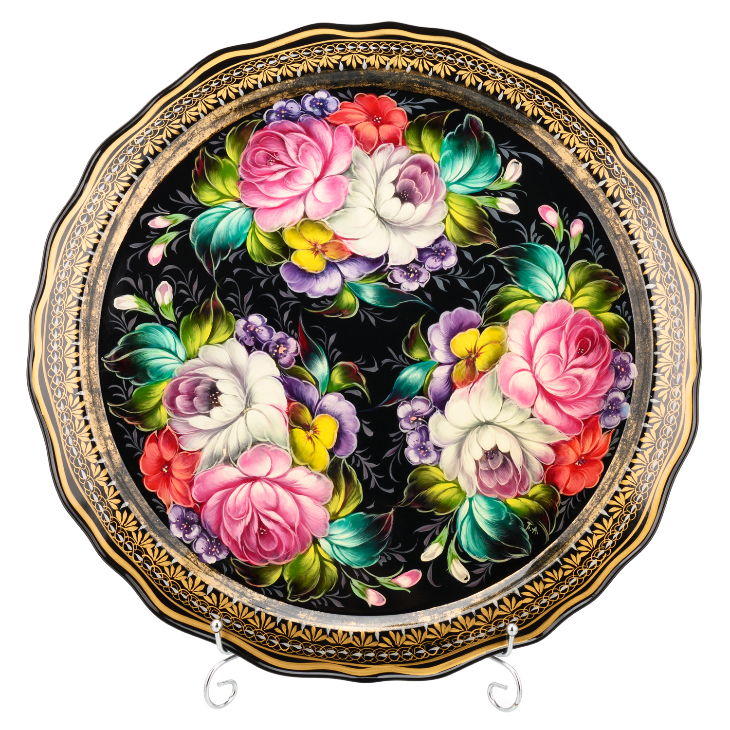 Поднос с авторской росписью "Цветы".Материалы: сталь, краски, лак.