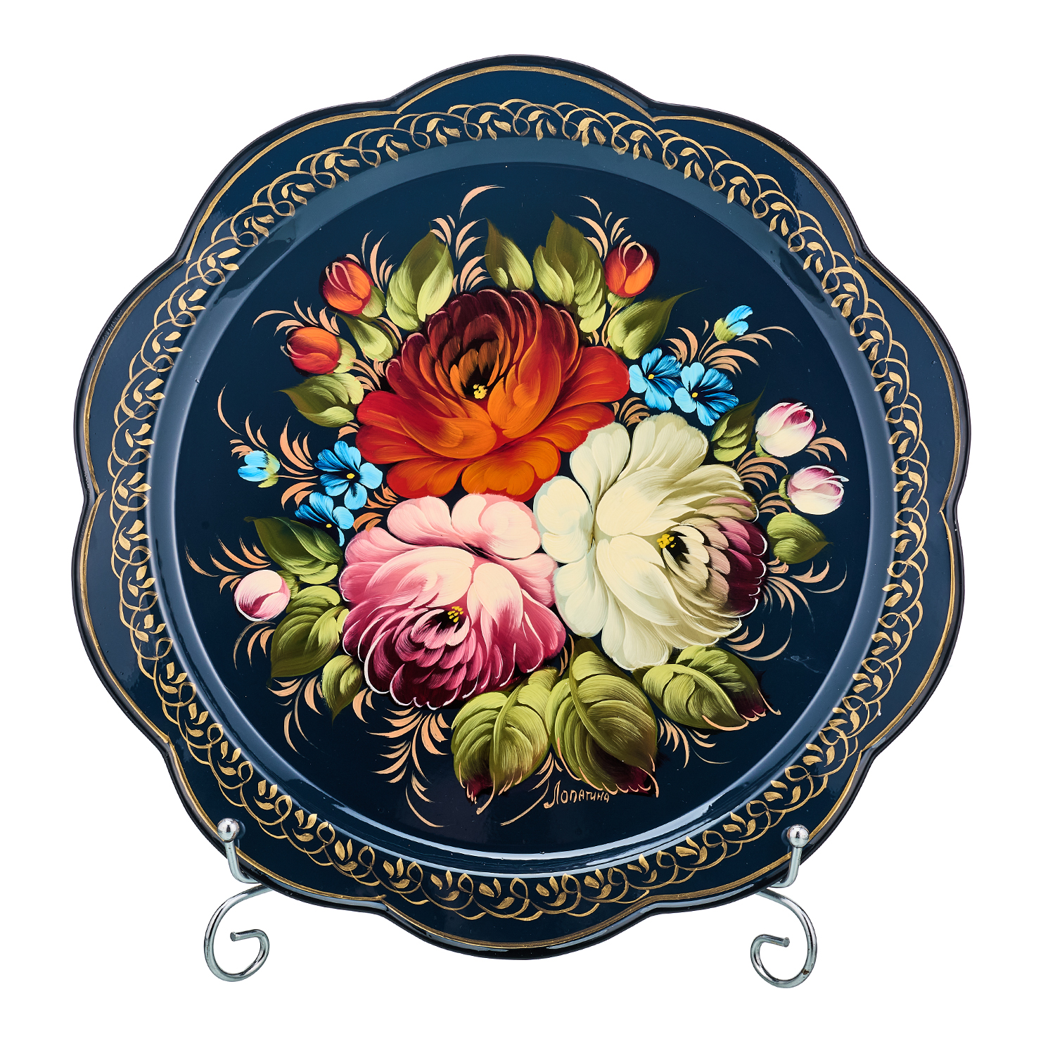 Поднос с авторской росписью "Цветы".