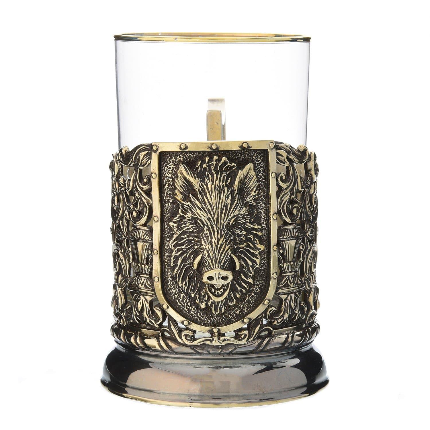 Подстаканник литой "Кабан". Бронза