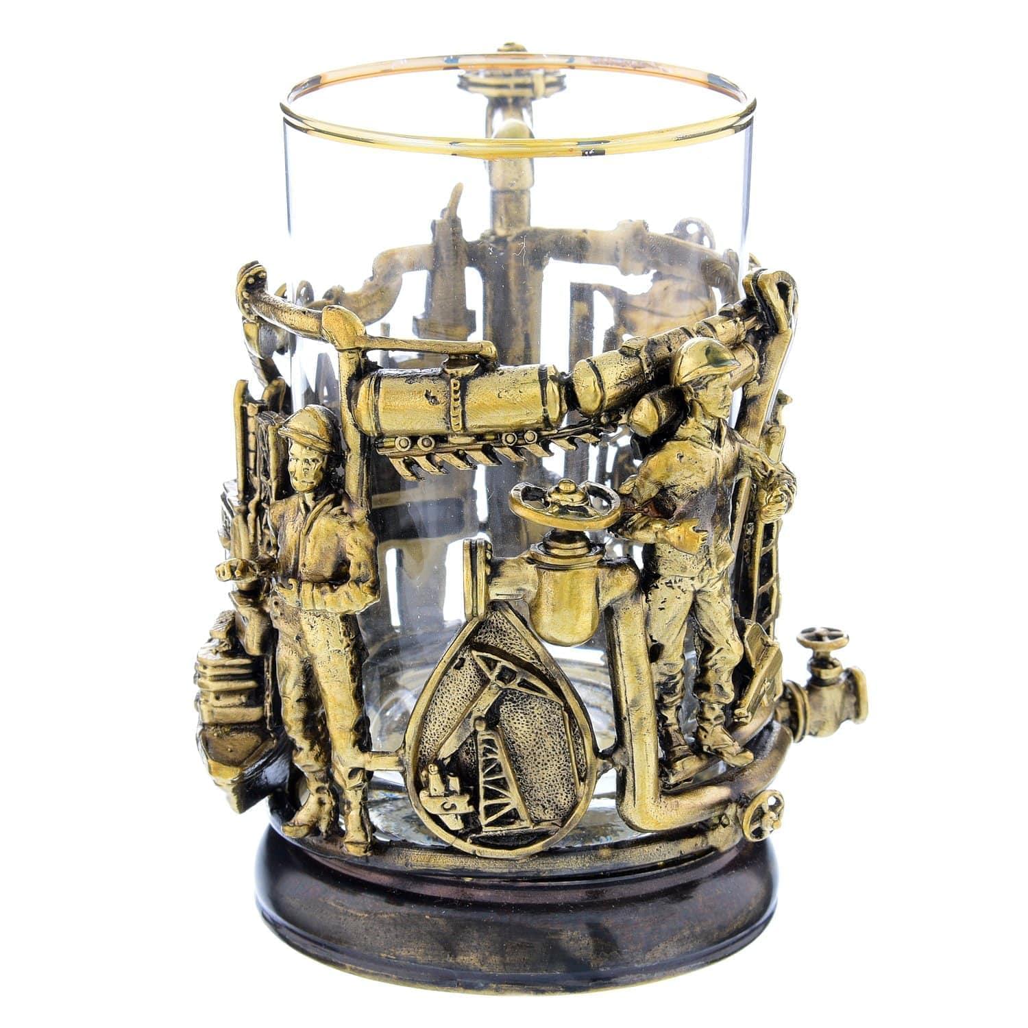 Подстаканник "НЕФТЯНИКИ" объем ЛИТЬЕ со стаканом