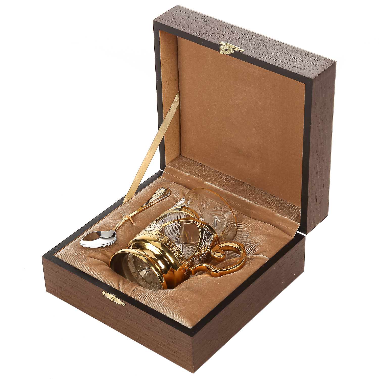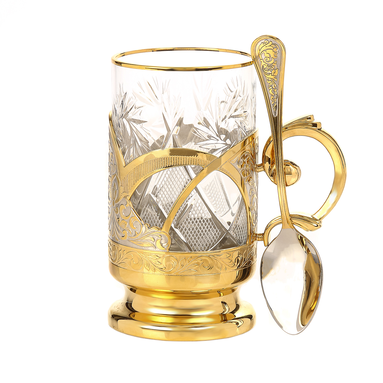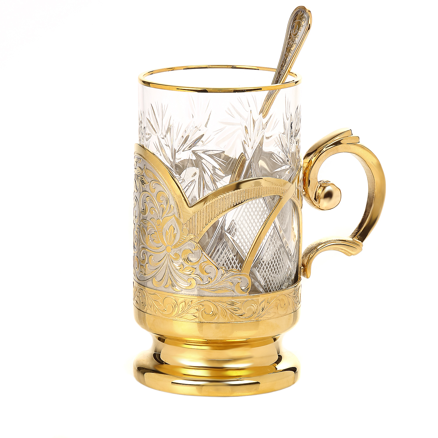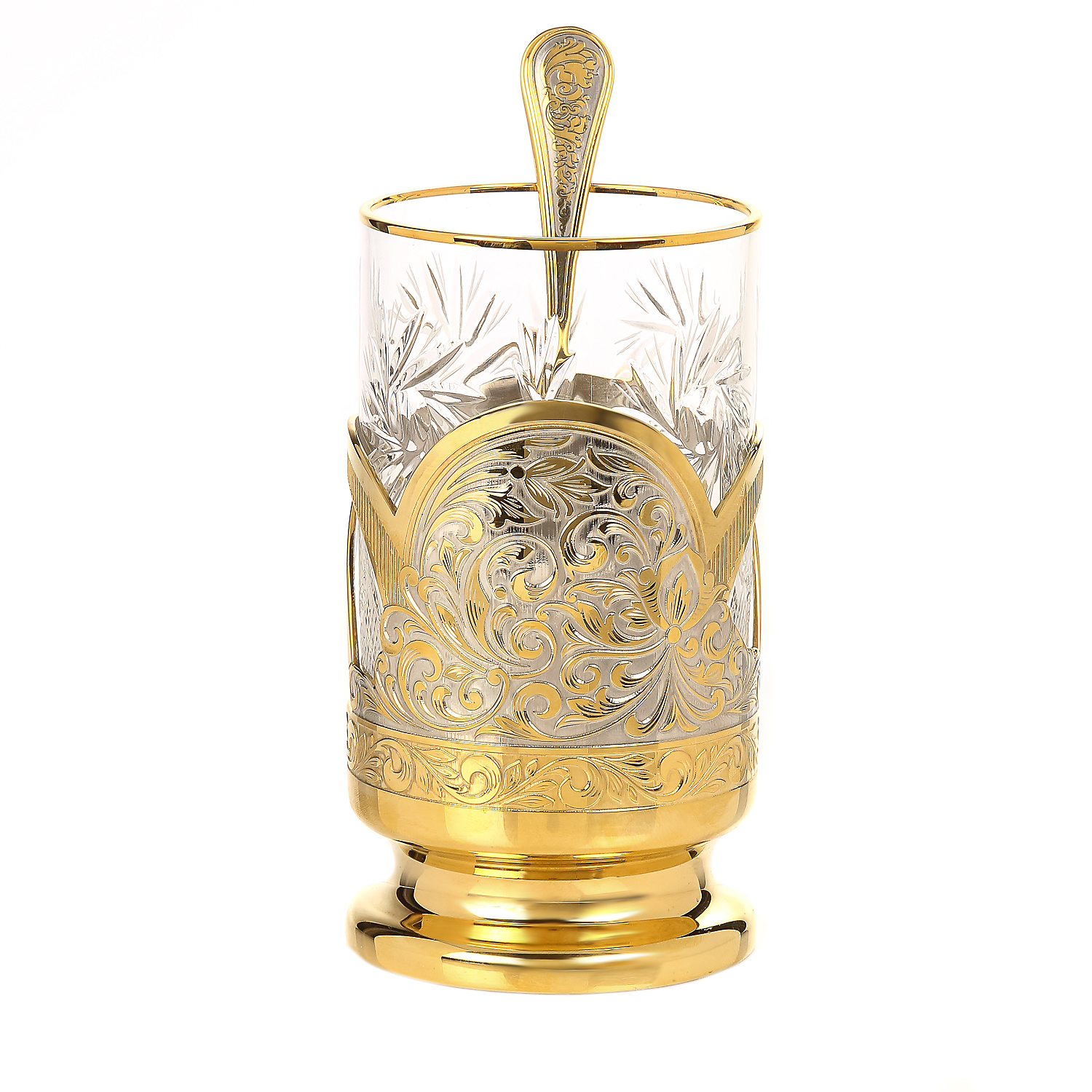 Подстаканник латунный с ложкой. Златоуст