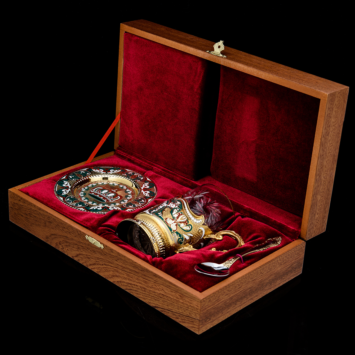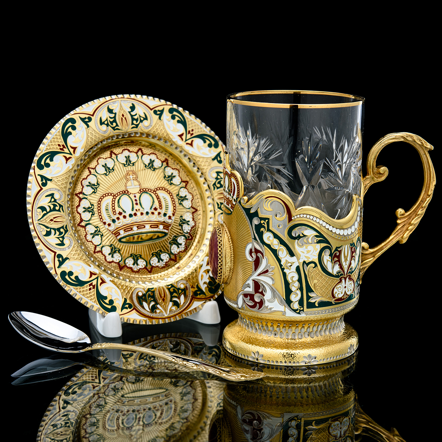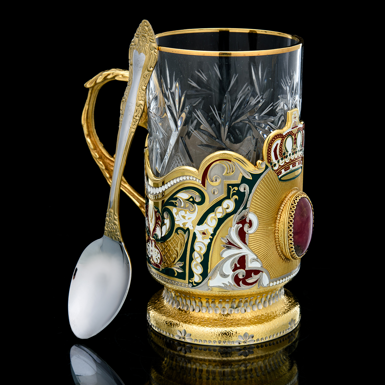 Русские подарки и сувениры → Посуда → Подстаканники → Чайный набор с подстаканником "Корона". Златоуст