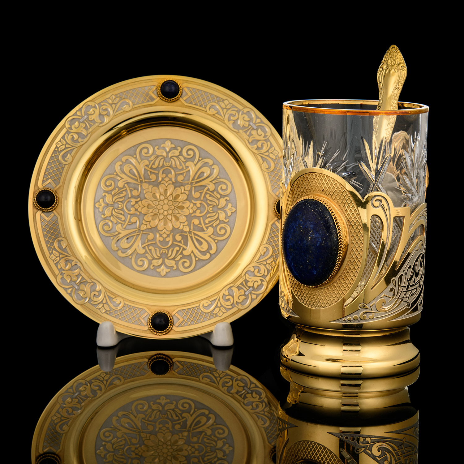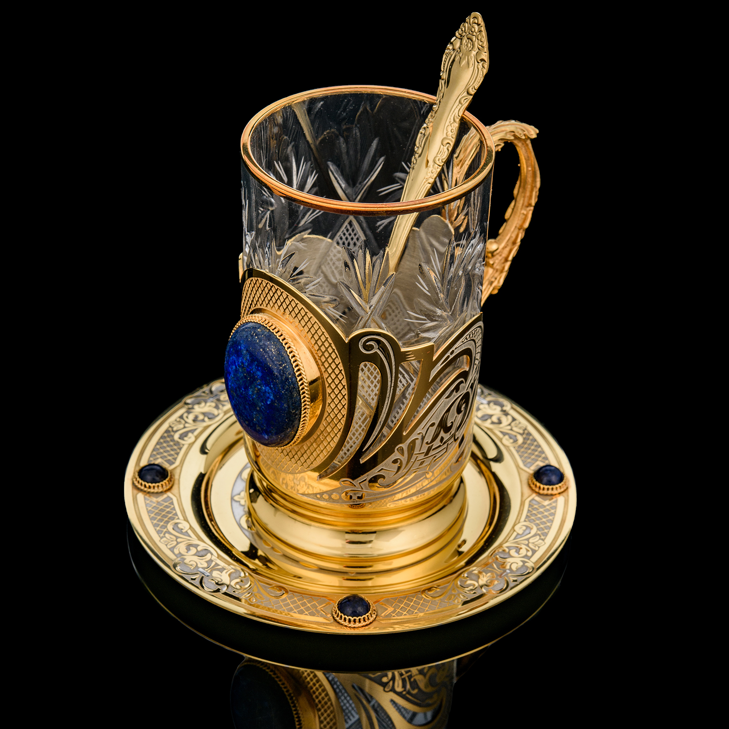 Подстаканник с блюдцем "Лазурит". Златоуст