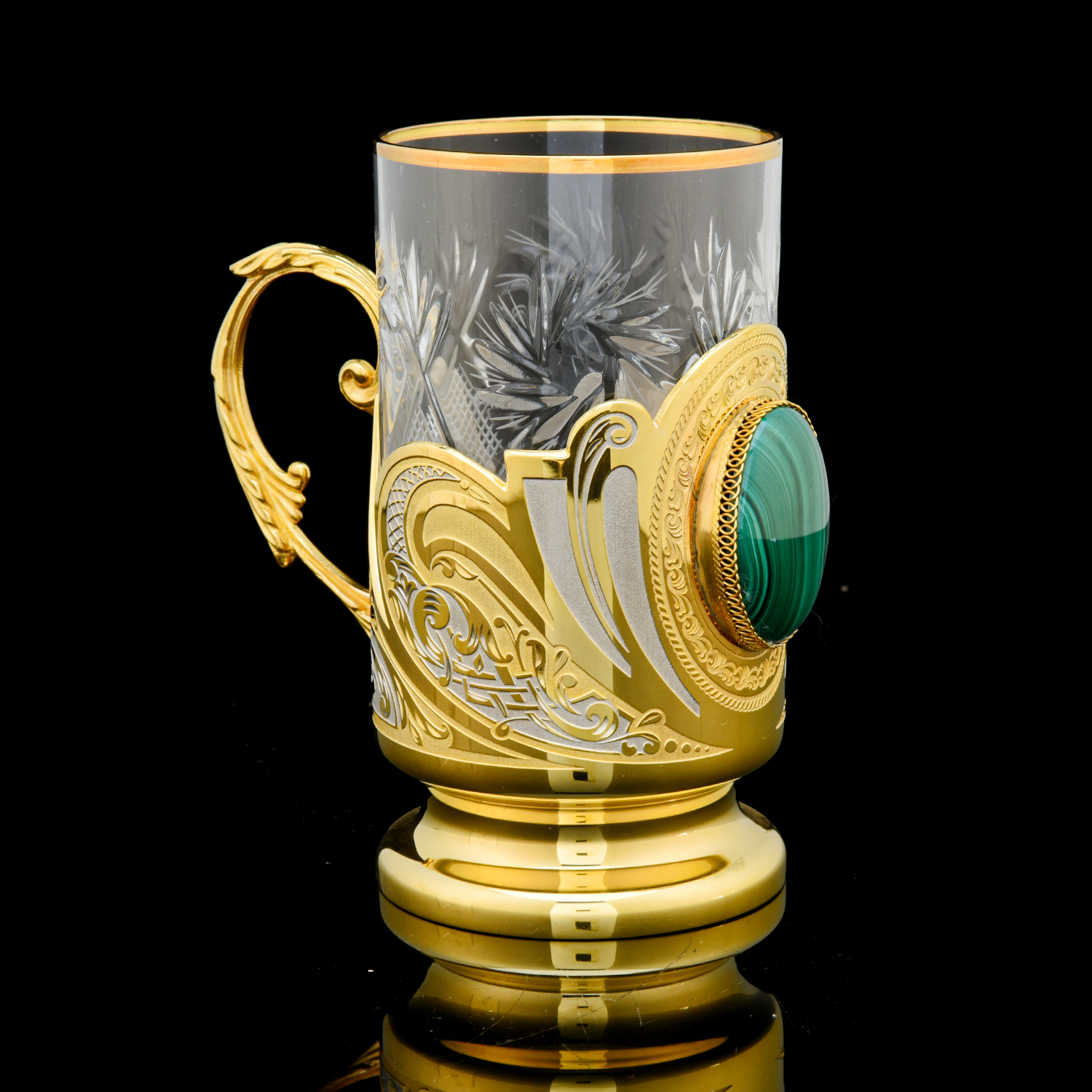 Чайный набор с подстаканниками "Малахит". Златоуст