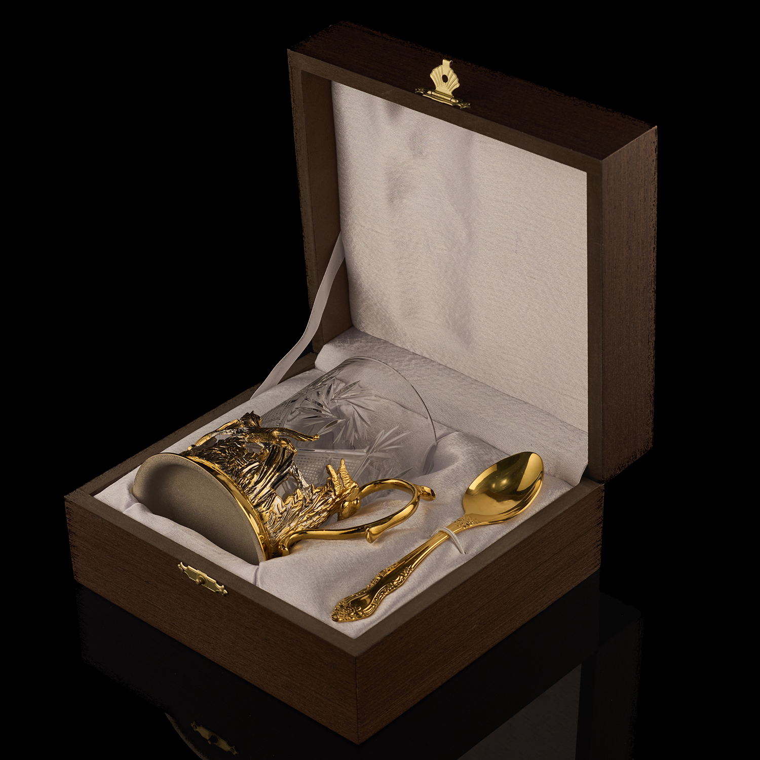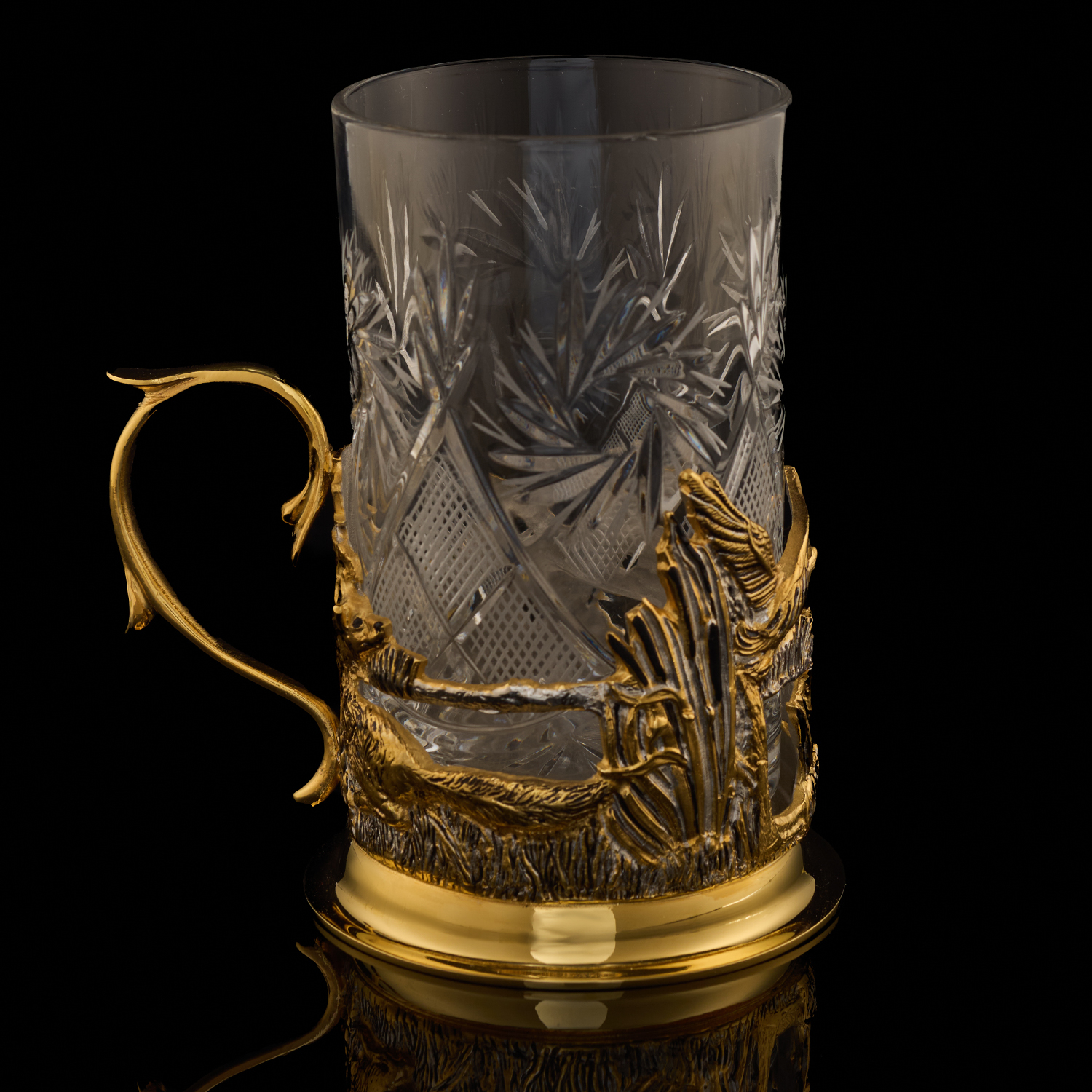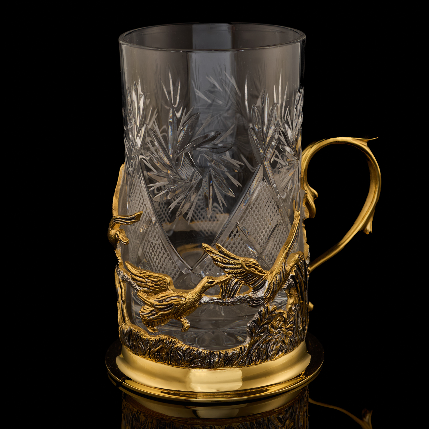 Подстаканник "Утиная охота". Златоуст.Материалы: латунь, золото 999,9*, серебрение.