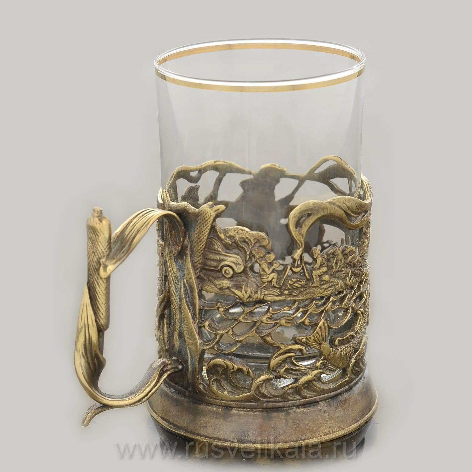 Перед Вами - адресный подарок для рыбака, функциональный сувенир в русском стиле, подстаканник со съемным  стаканом, который порадует  почитателя авторской посуды.  Этот предмет обихода из металла и стекла оригинального дизайна известен  с 19 века. Первые подстаканники появились во времена активной государственной деятельности министра Витте. Сегодня подстаканники - это романтические  символы, напоминающие о  поездах дальнего следования, и  стильные авторские подарки...