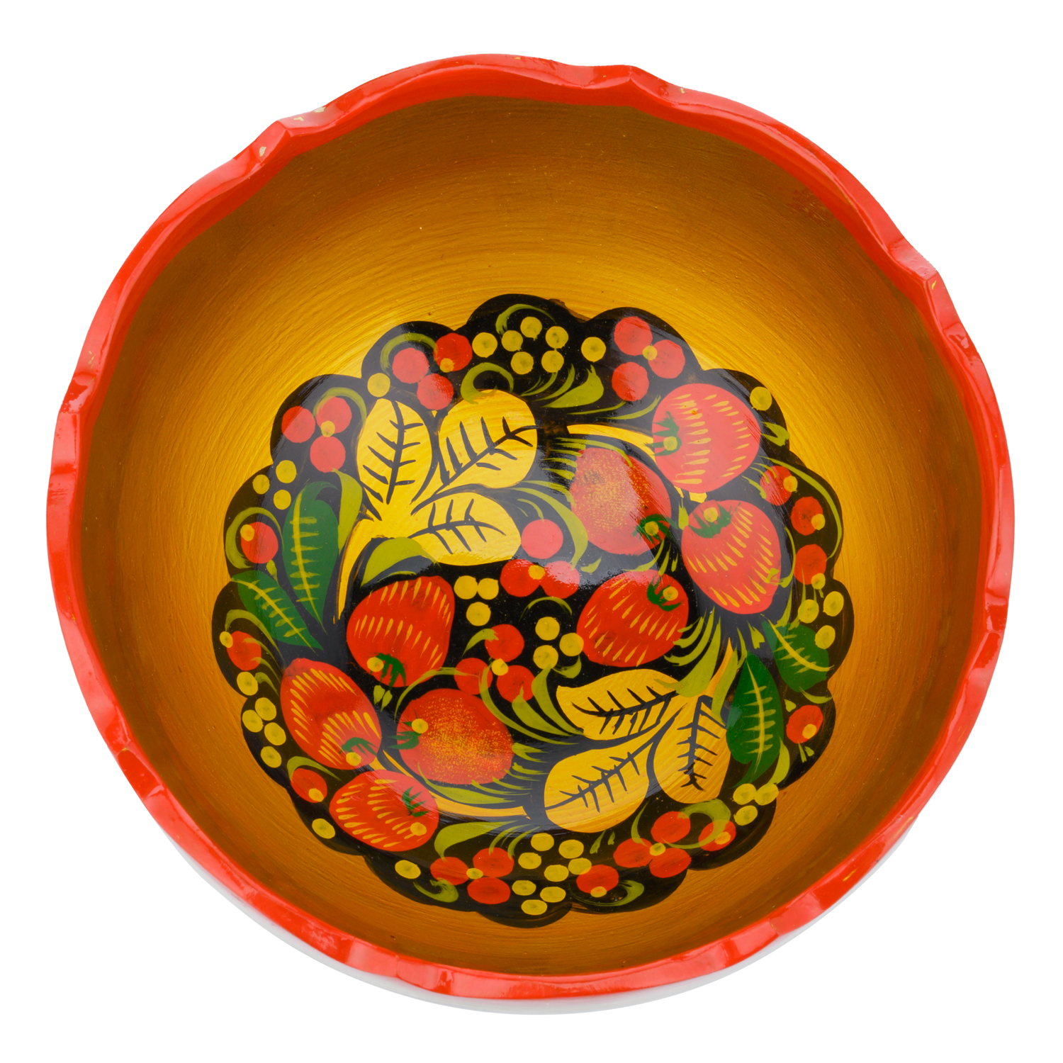 Чаша деревянная с росписью "Клубника". Хохлома