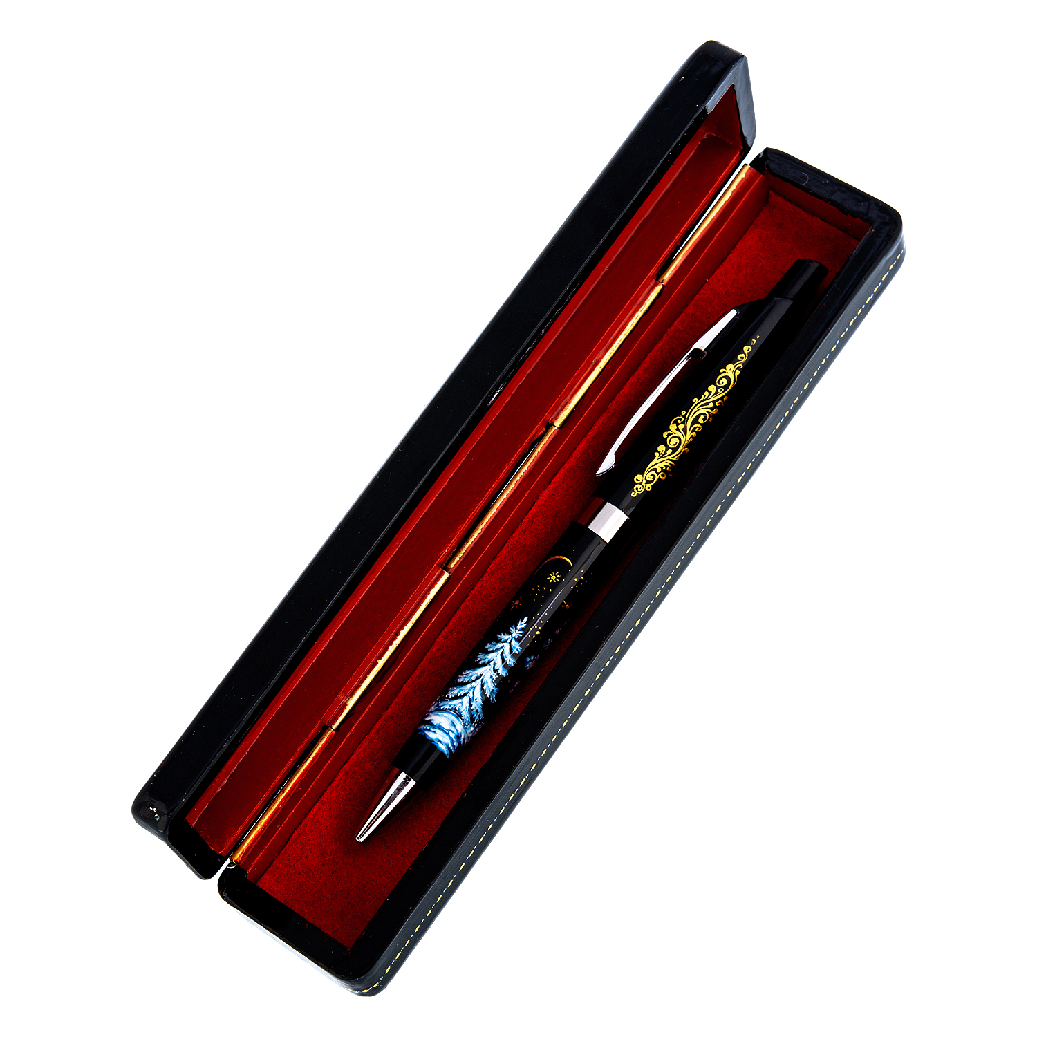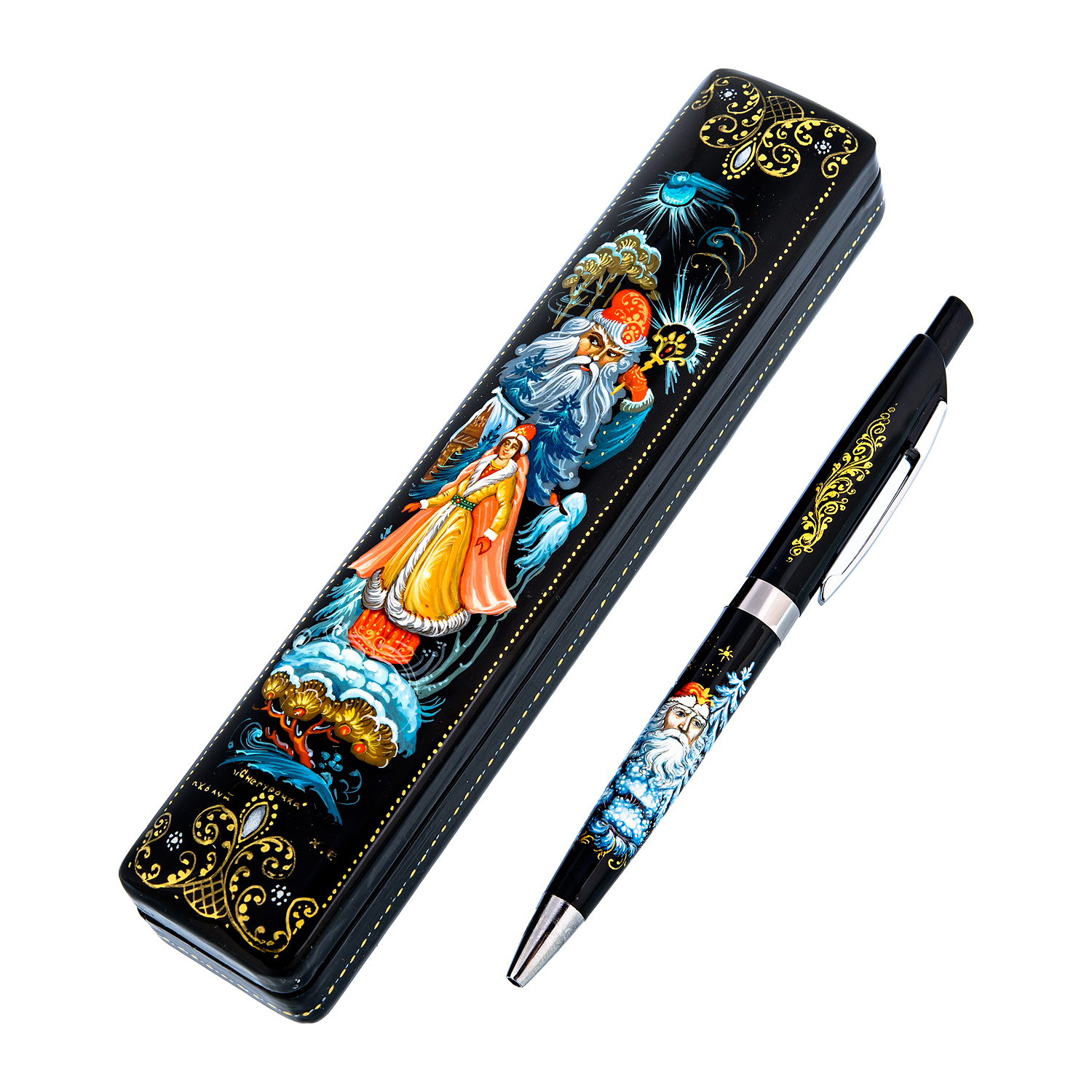 Ручка в шкатулке с росписью "Дед Мороз и Снегурочка"