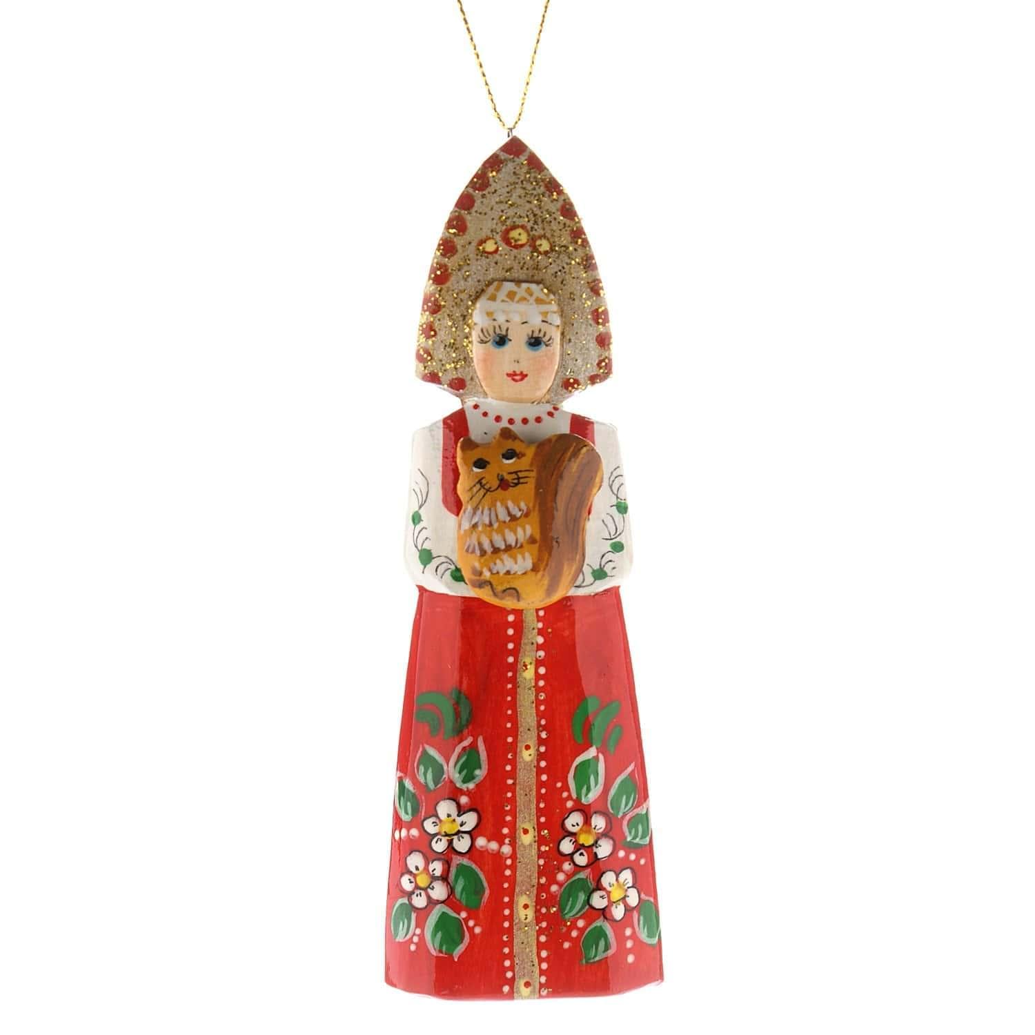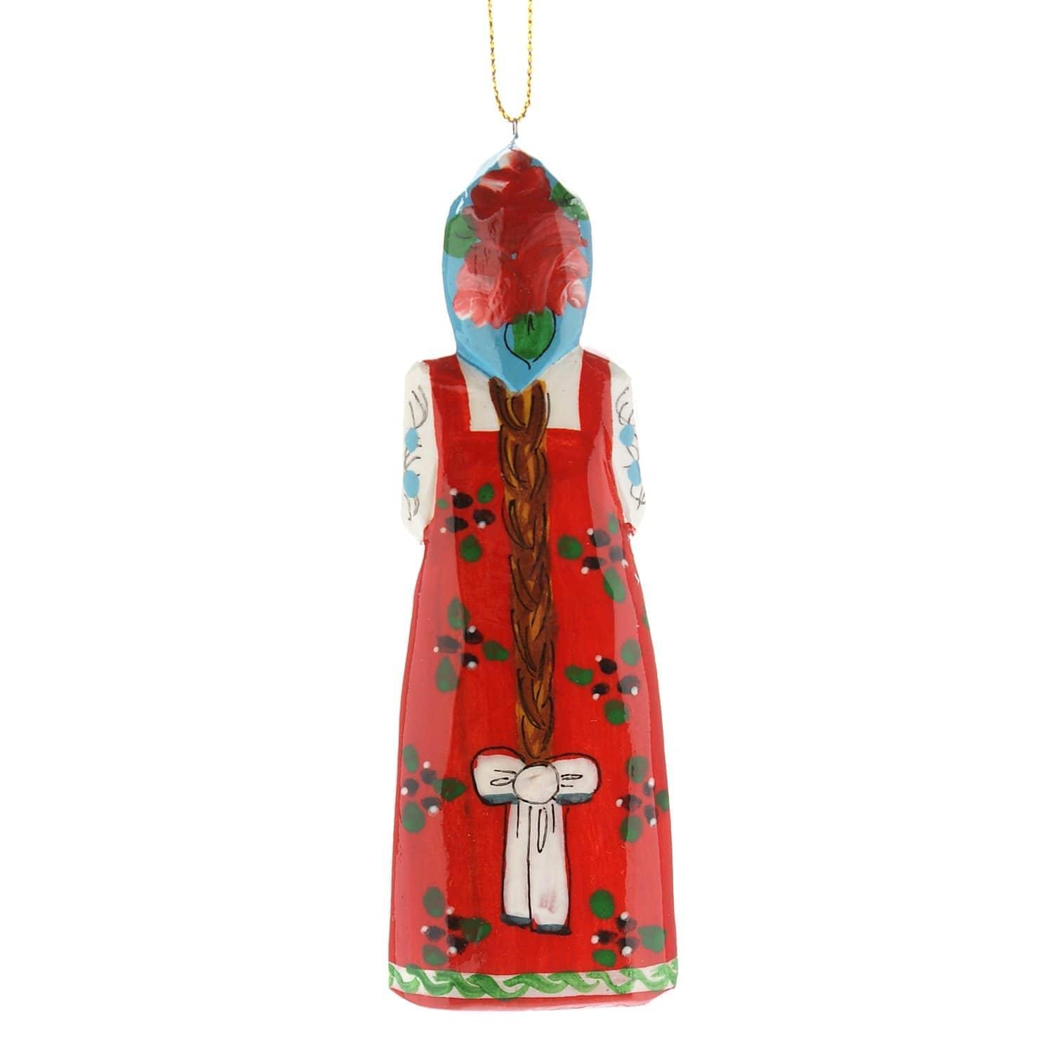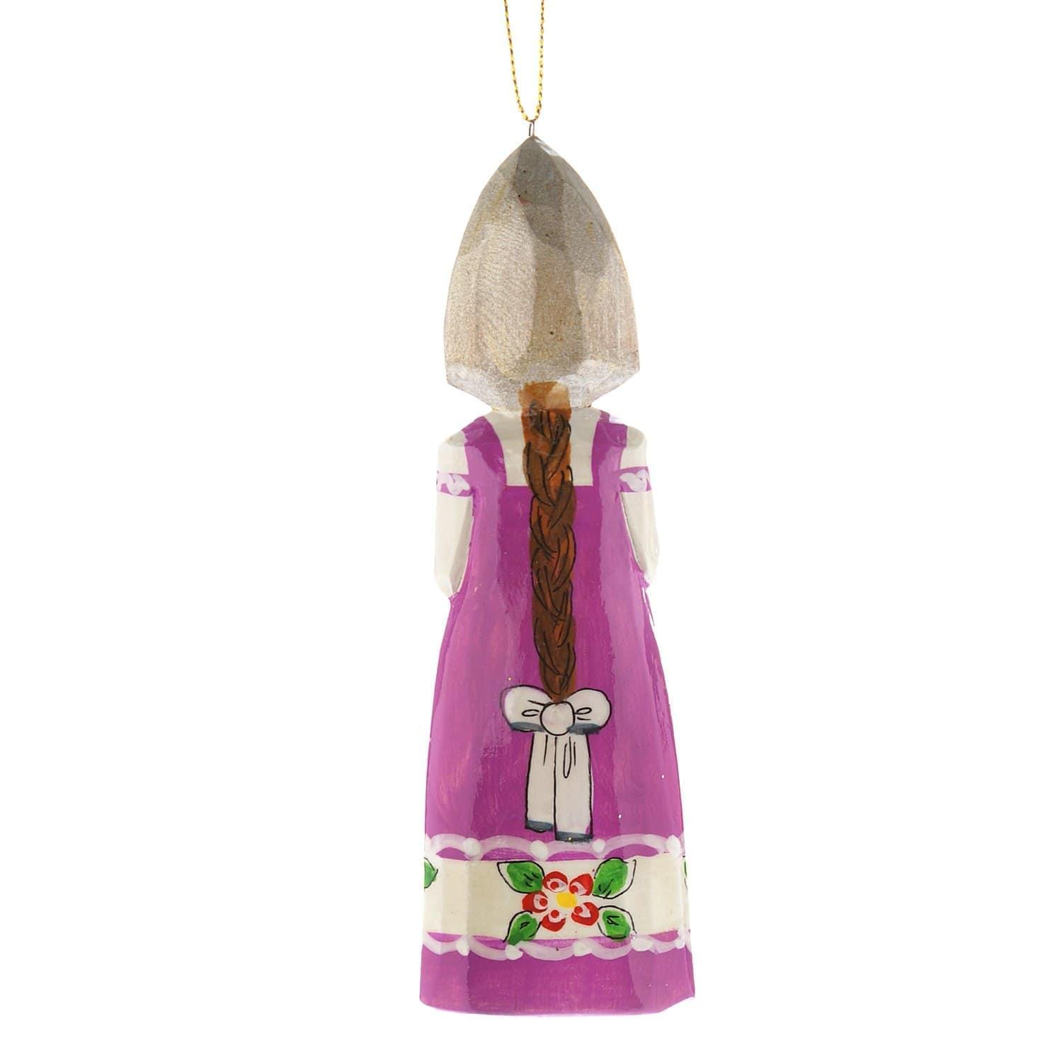 Образ русской красавицы в национальном костюме, длинном сарафане и высоком головном уборе, кокошнике воплощен в скульптуре, вырезанной из дерева вручную. Дерево - тот поделочный материал, который, согласно древним поверьям, наилучшим образом обеспечивает связь человека с богом. Авторская деревянная игрушка "Кукла" - вариант универсального подарка-сувенира в русском стиле.