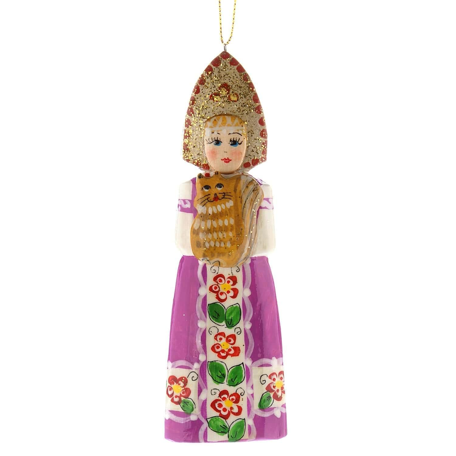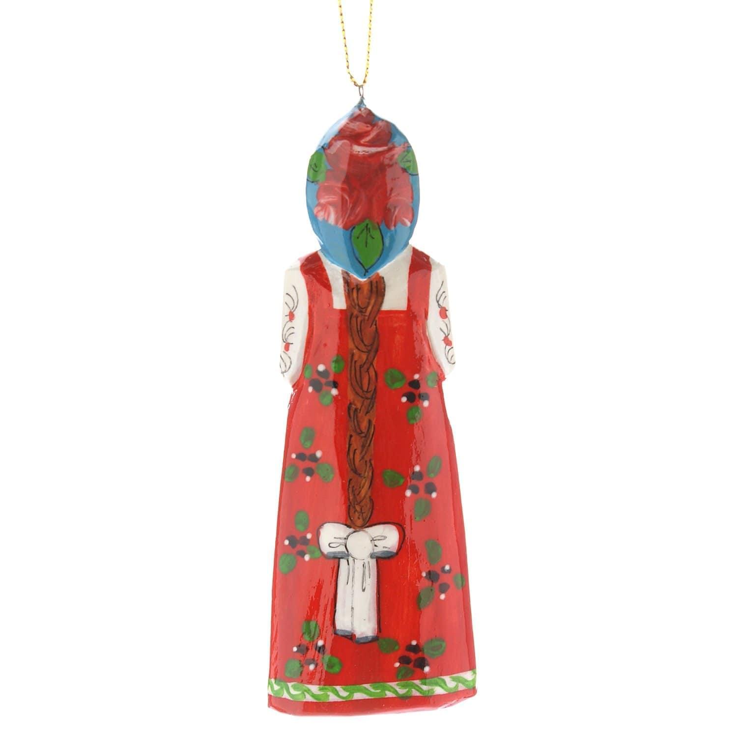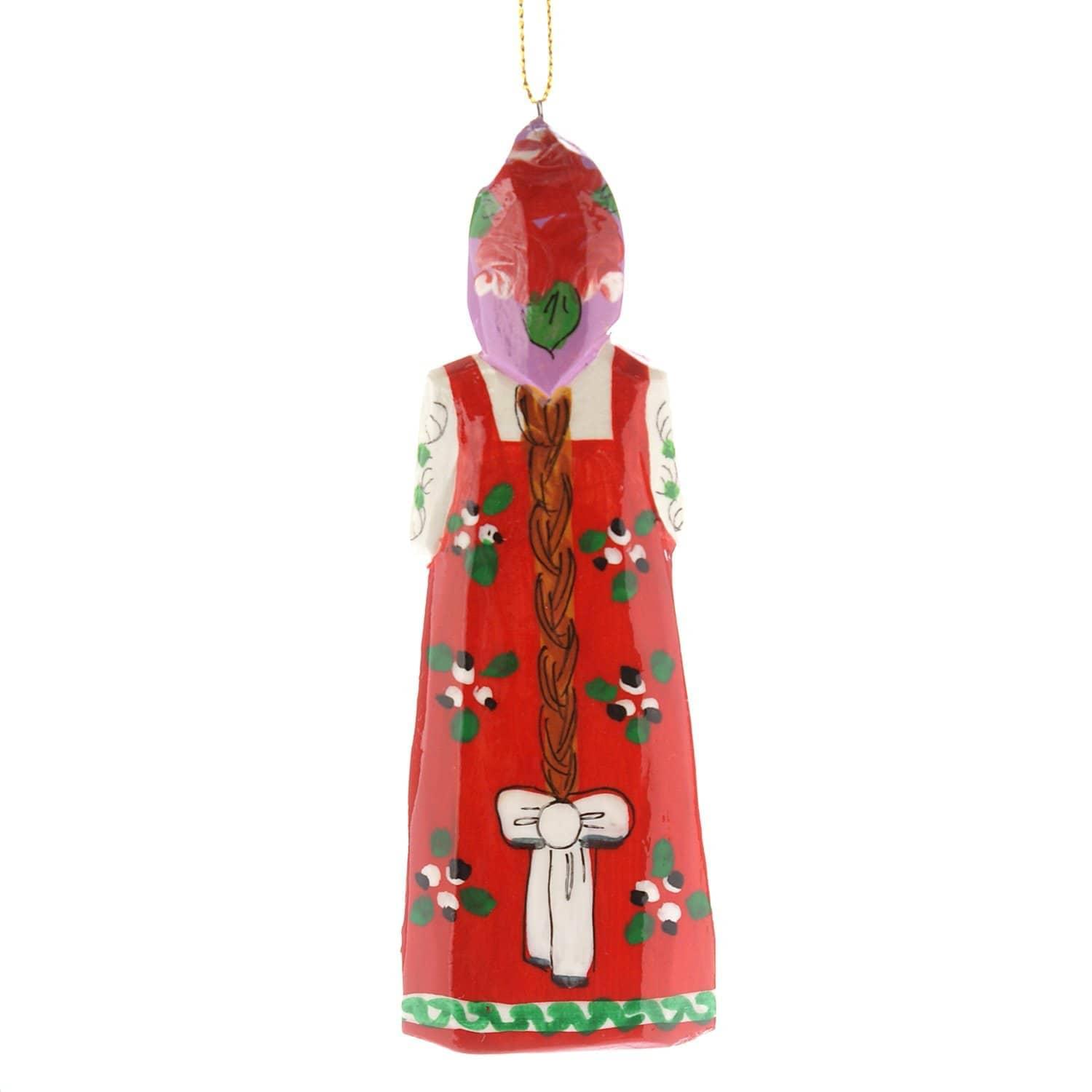 Образ русской красавицы в национальном костюме, длинном сарафане и высоком головном уборе, кокошнике воплощен в скульптуре, вырезанной из дерева вручную. Дерево - тот поделочный материал, который, согласно древним поверьям, наилучшим образом обеспечивает связь человека с богом. Авторская деревянная игрушка "Кукла" - вариант универсального подарка-сувенира в русском стиле.