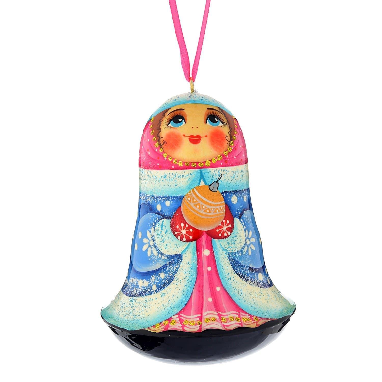 Елочная игрушка шар "Снегурочка с игрушкой"