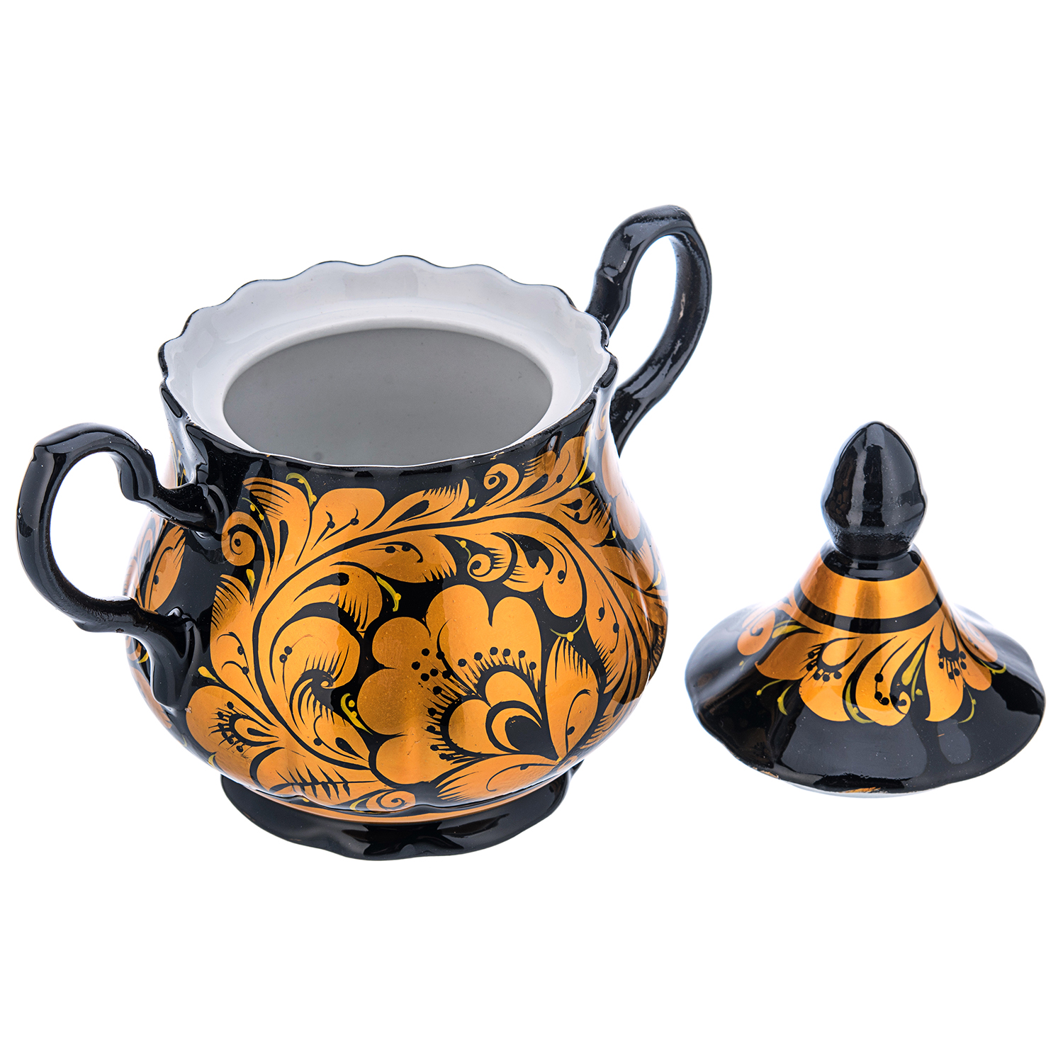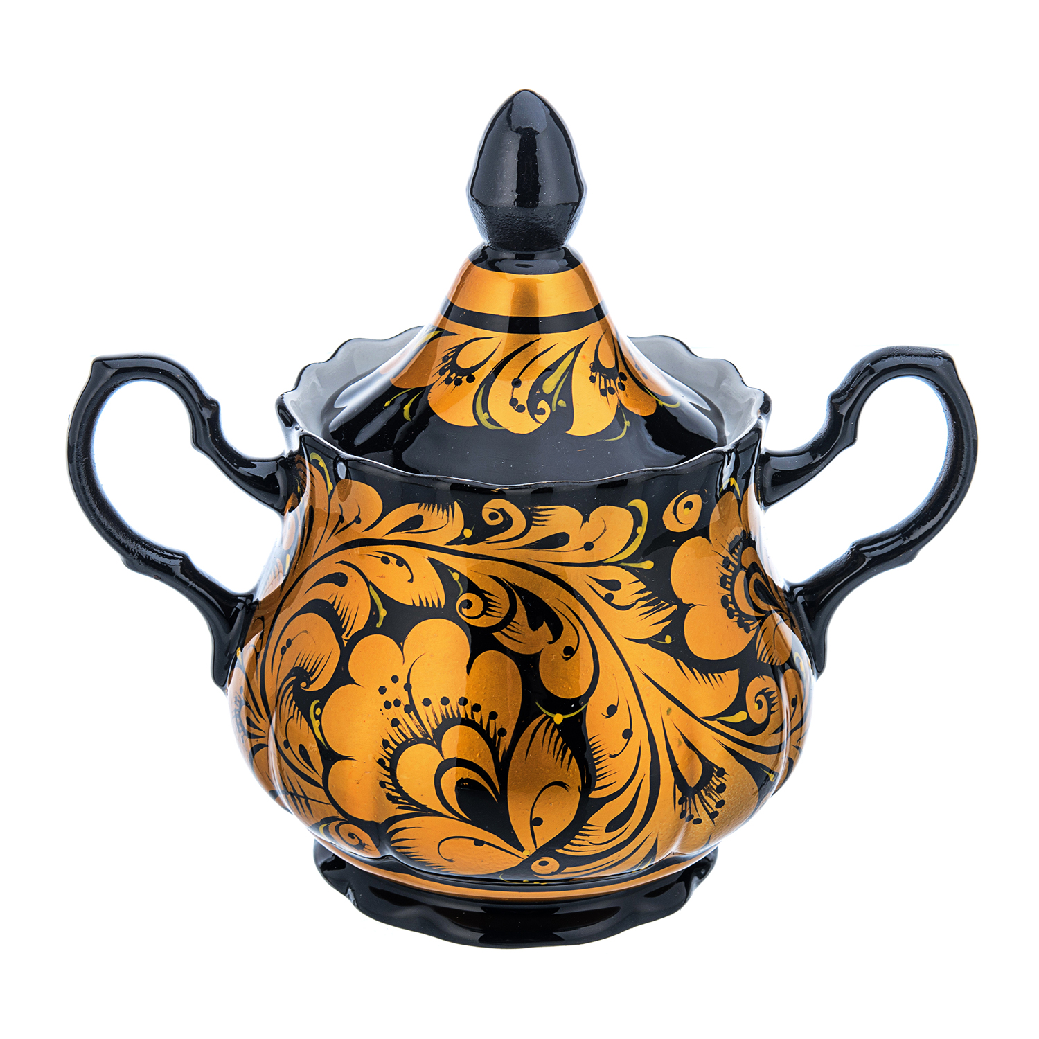 Сахарница "Кудрина золотая". Хохлома