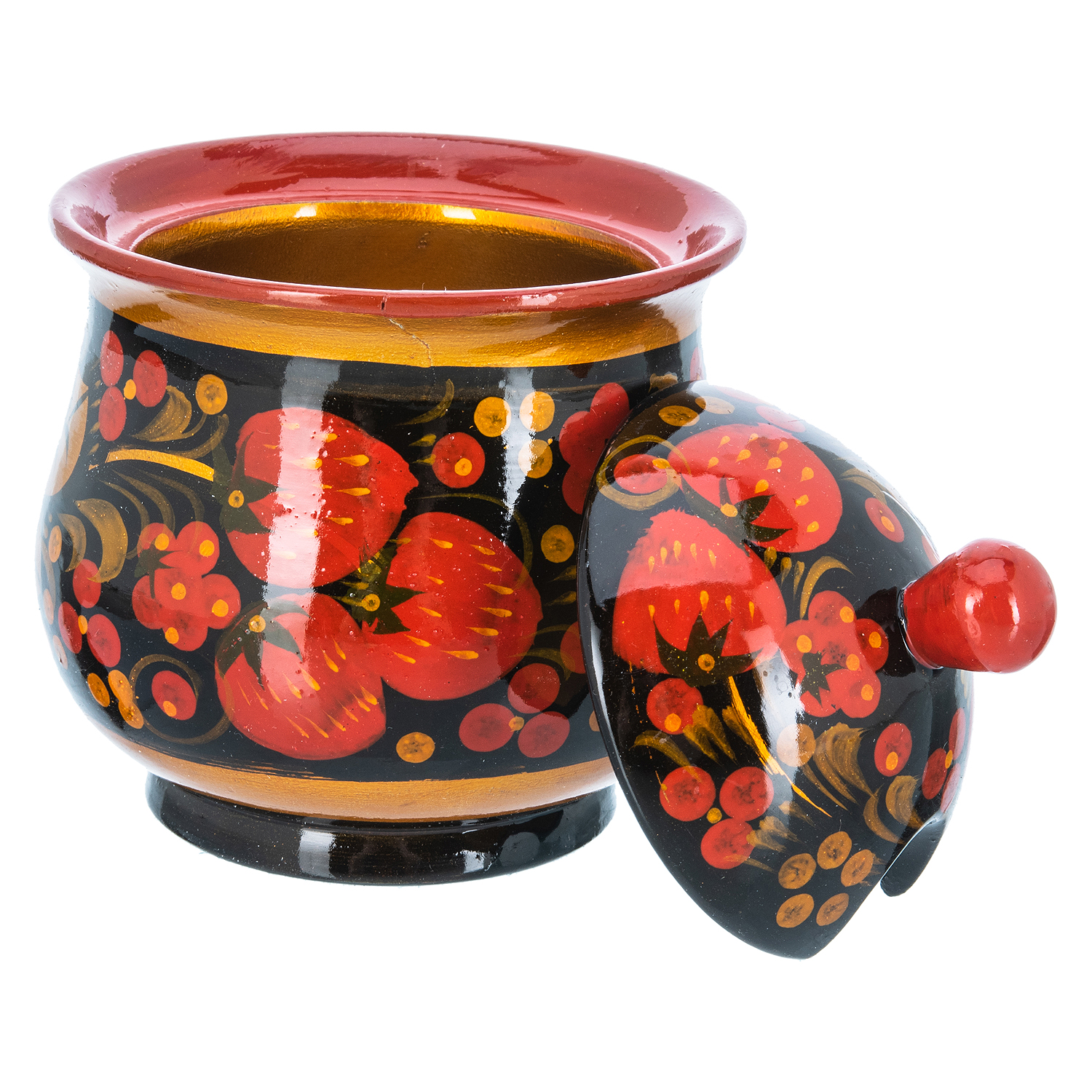 Сахарница с росписью. Хохлома.Материалы: дерево, краски, лак.