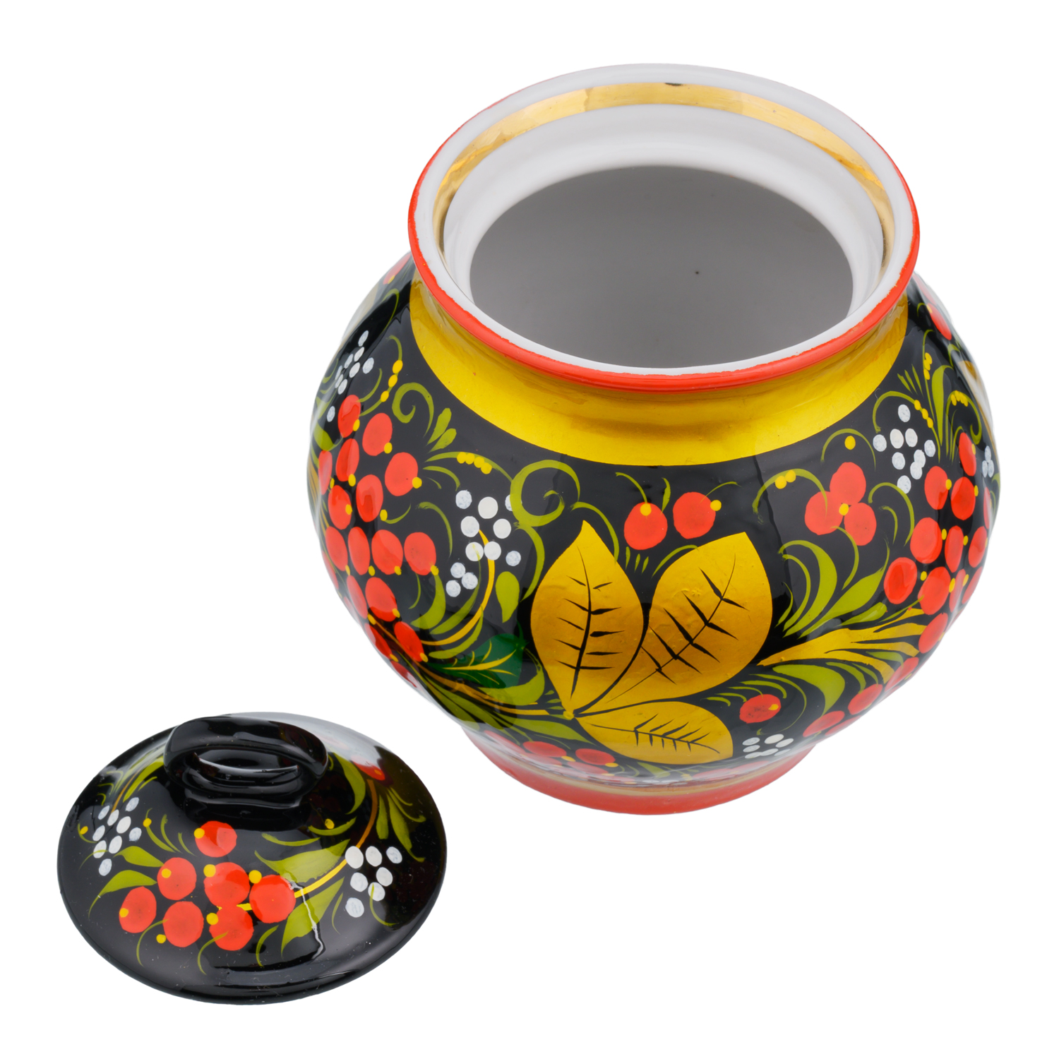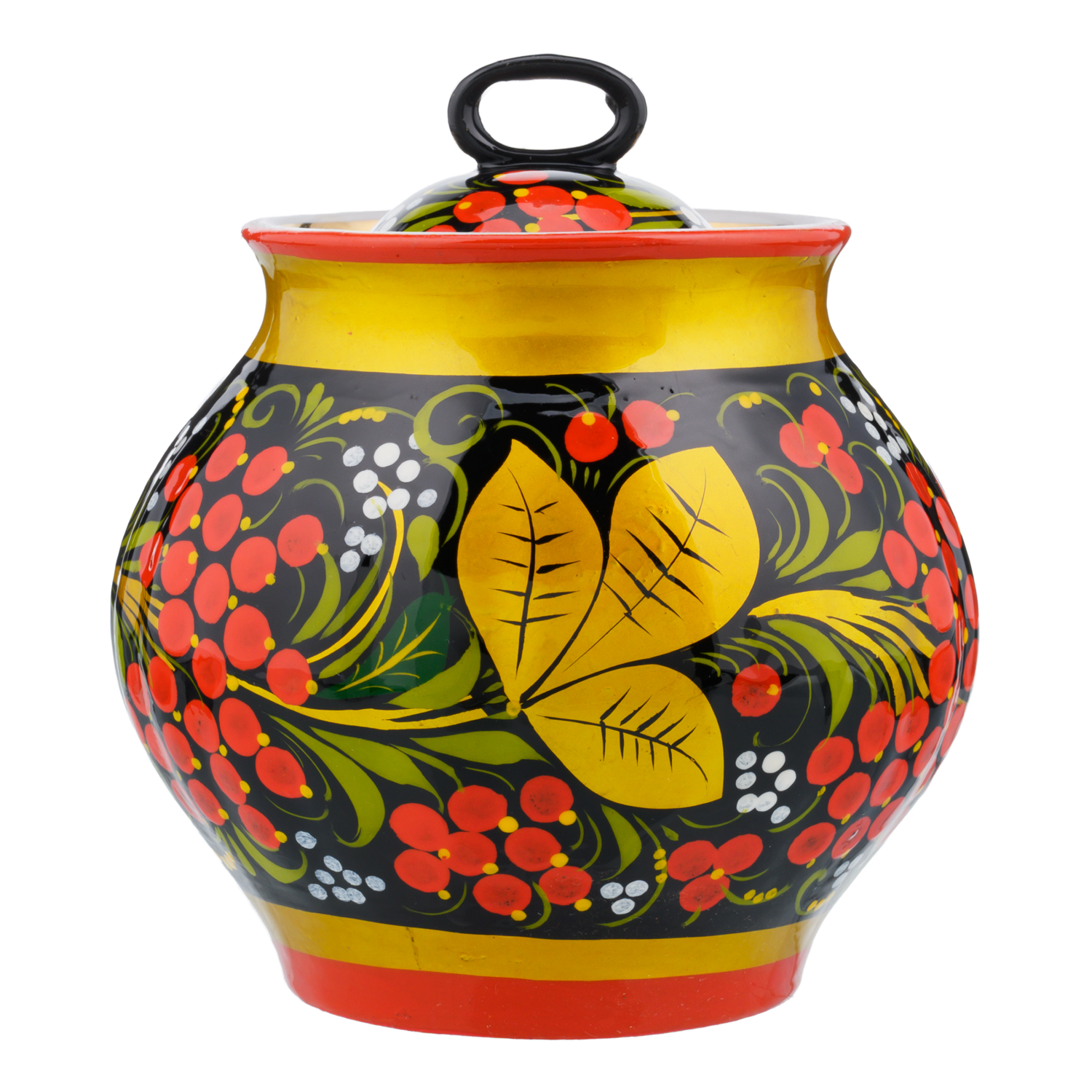 Сахарница фарфоровая с росписью "Рябина". Хохлома